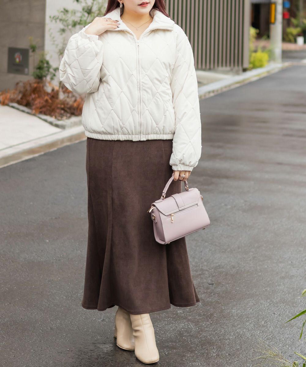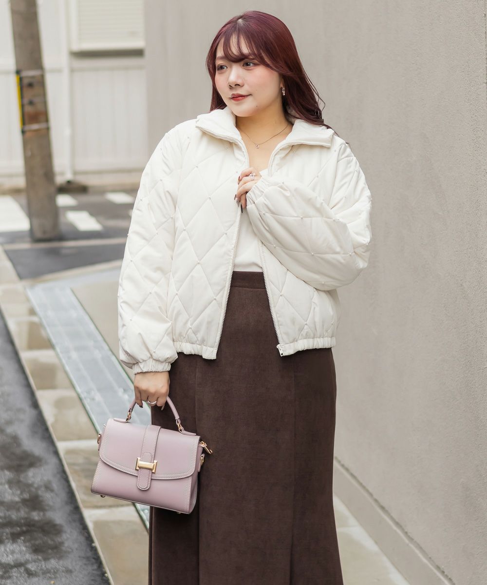 3Lサイズを着用してちょうどいいサイズ感でした!フェミニンさが目を惹くショートジャケットで、程よい丈感と軽くて着心地も抜群なアウターです◎インナー次第で長い季節お使いいただけます。デニム合わせはもちろん、ワンピースやミニスカートにもピッタリです♪キルティングとパールの組み合わせが高見えでかわいいです!写真映えするアイテムなので、お出かけや旅行などたくさん着回しできそう!