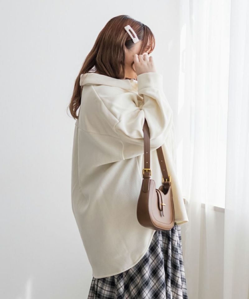 3Lサイズを着用して、ほどよく余裕を持ったサイズ感で着る事ができました。トレンド感のあるコーデュロイ素材なのでコーデに取り入れるだけで今っぽい印象になれそうです◎裏側は温かみのある起毛素材で防寒性もしっかりありました。アウターとして活躍しそうです!季節の変わり目にも活躍します◎ほどよくゆとりがあって中にニットも着る事ができるので冬も重宝します。カジュアルにまとめるのも良いですし、甘いアイテムと合わせてフェミニンに着るのもおすすめです♪