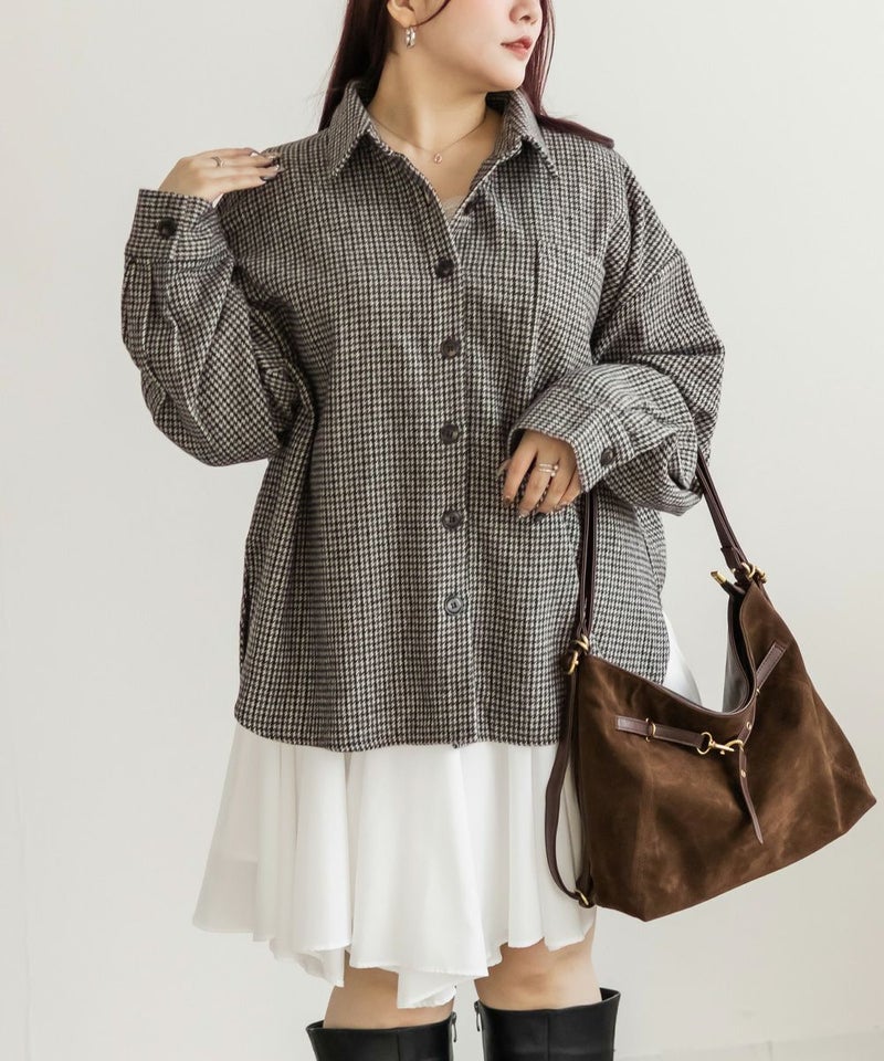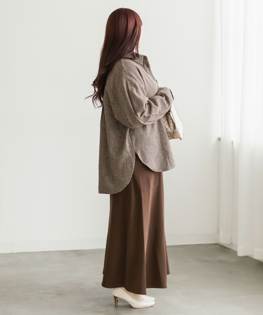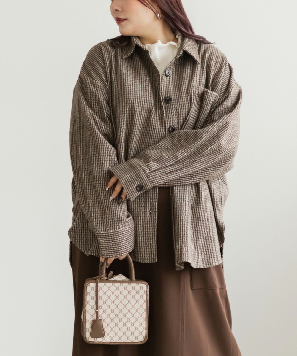 3Lサイズを着用しました。ぴったりのサイズ感でした。あたたかみのあるチェック柄と少し起毛がかった生地は秋冬にぴったりです!トップスとしても羽織としても着回しできるのも嬉しいポイントです◎長めの着丈で、腰回りもカバーしてくれます!