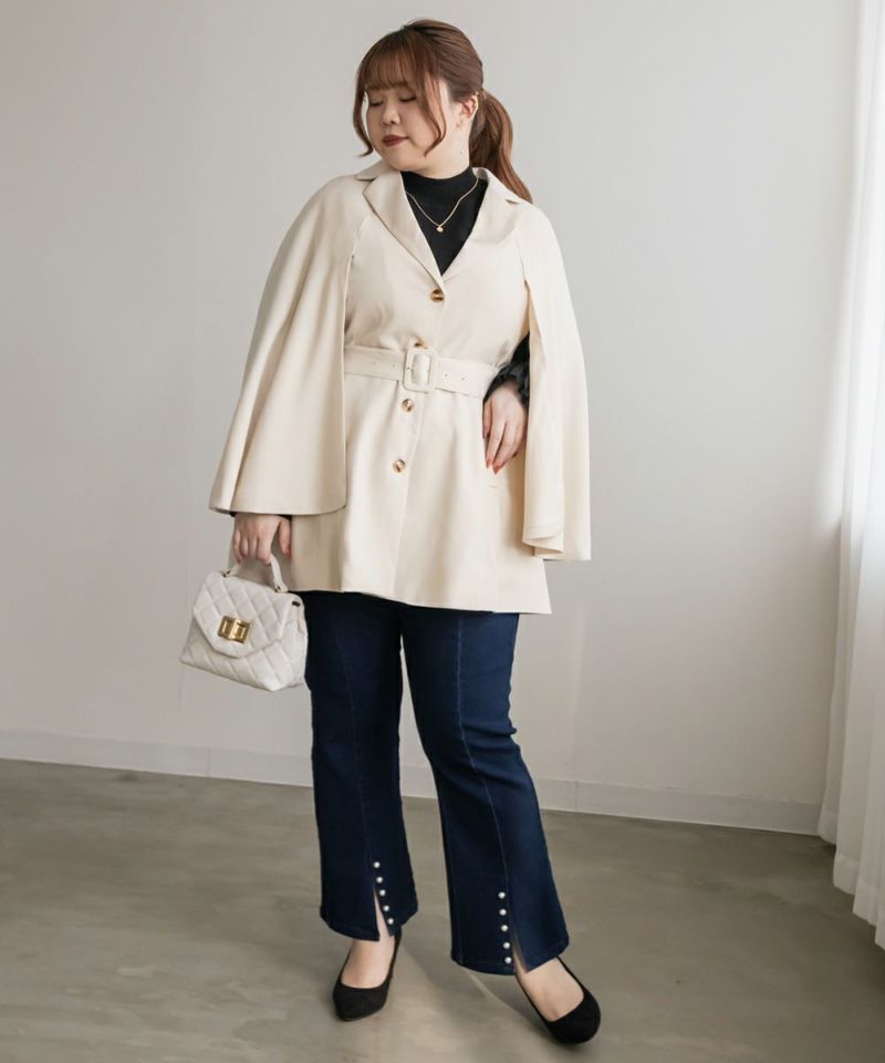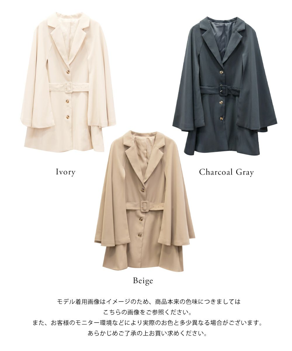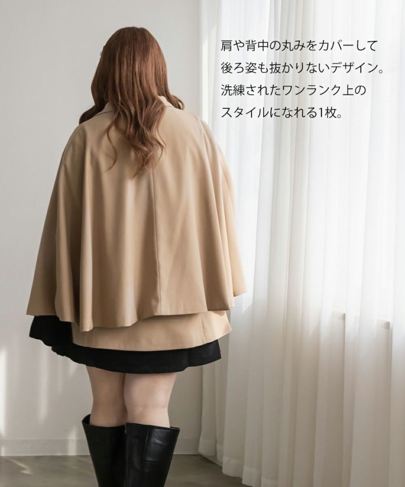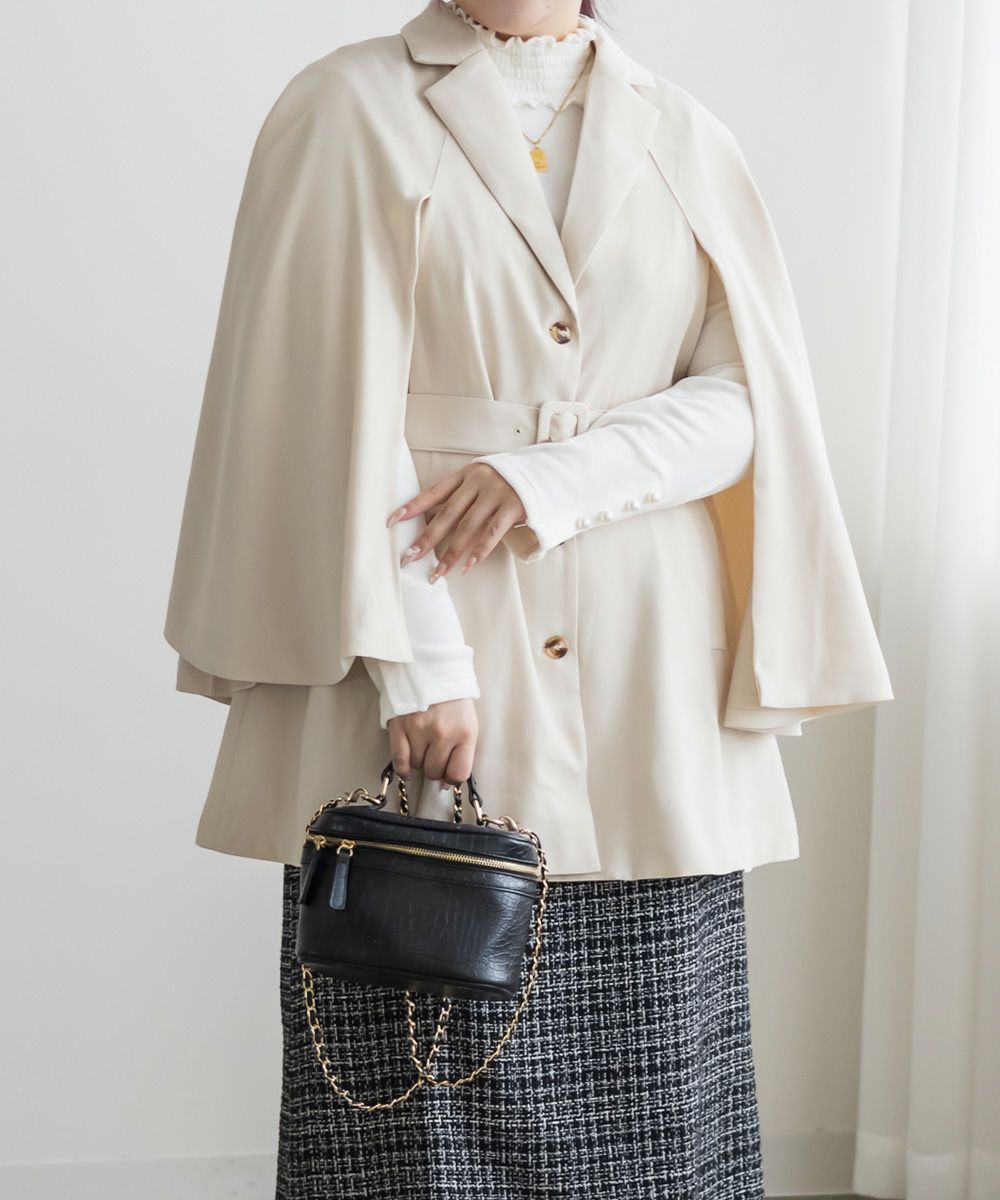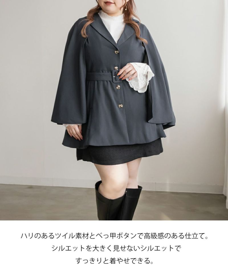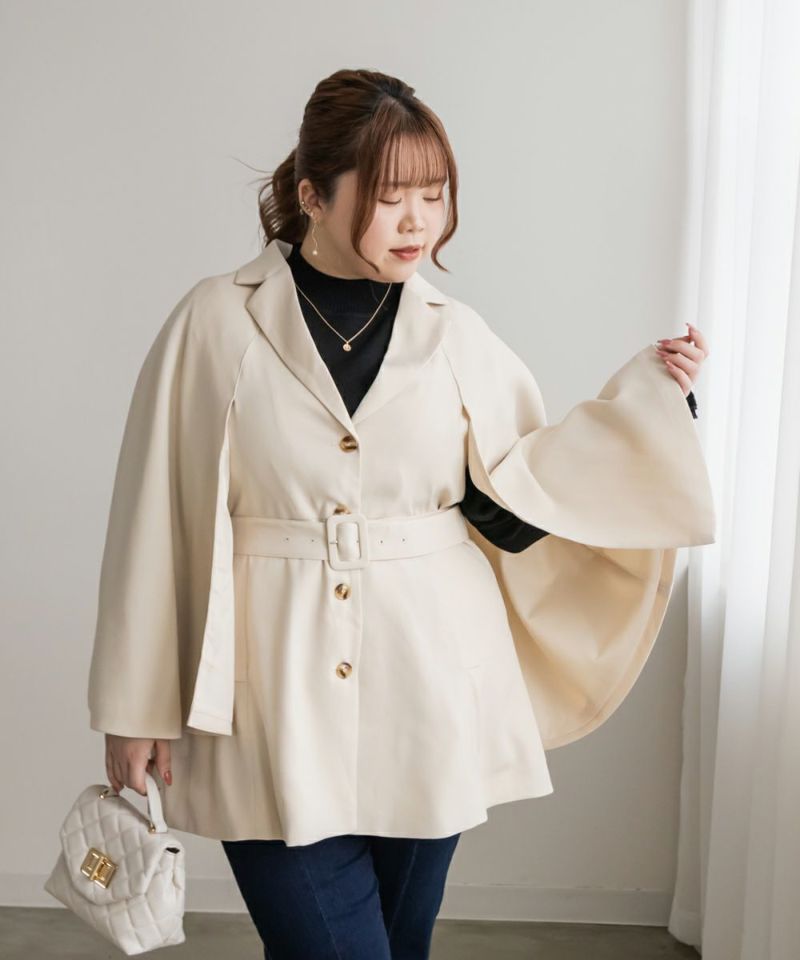 3Lを着てちょうどいいサイズ感でした。トレンドをしっかり押さえつつ、裏地付きなど高級感もあり防寒もできるので今季おすすめの優秀アウターです♪真冬は少し寒いかもですが、春秋のアウターとして重宝する1枚。ケープのデザインが今っぽくて、前から見たらテーラードジャケット風でお仕事などきちんとしたシーンにも使いやすいです!トレンチコートなどの代わりににもつかえる印象です。ポケットやベルト付きで実用性もデザイン性もあって可愛いジャケットです!着た時のバランスが可愛いミニボトムコーデやミニワンピースのアウター使いがおすすめです◎