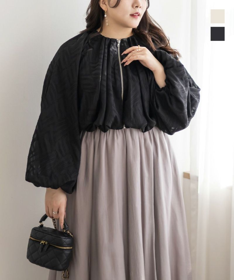 3Lサイズを着用して、ちょうどいいサイズ感でした♪ ふんわりとしたシルエットが女性らしく、上品な印象に◎ 程よいボリュームのある袖デザインが華やかで、羽織るだけでコーデのアクセントになります! 軽やかな生地感でさらっと着られ、セミオケージョンやハレの日の装いにもぴったり♪ ワンピースと合わせるときれいめに、デニムと合わせるとカジュアルダウンも楽しめる、万能アウターです!