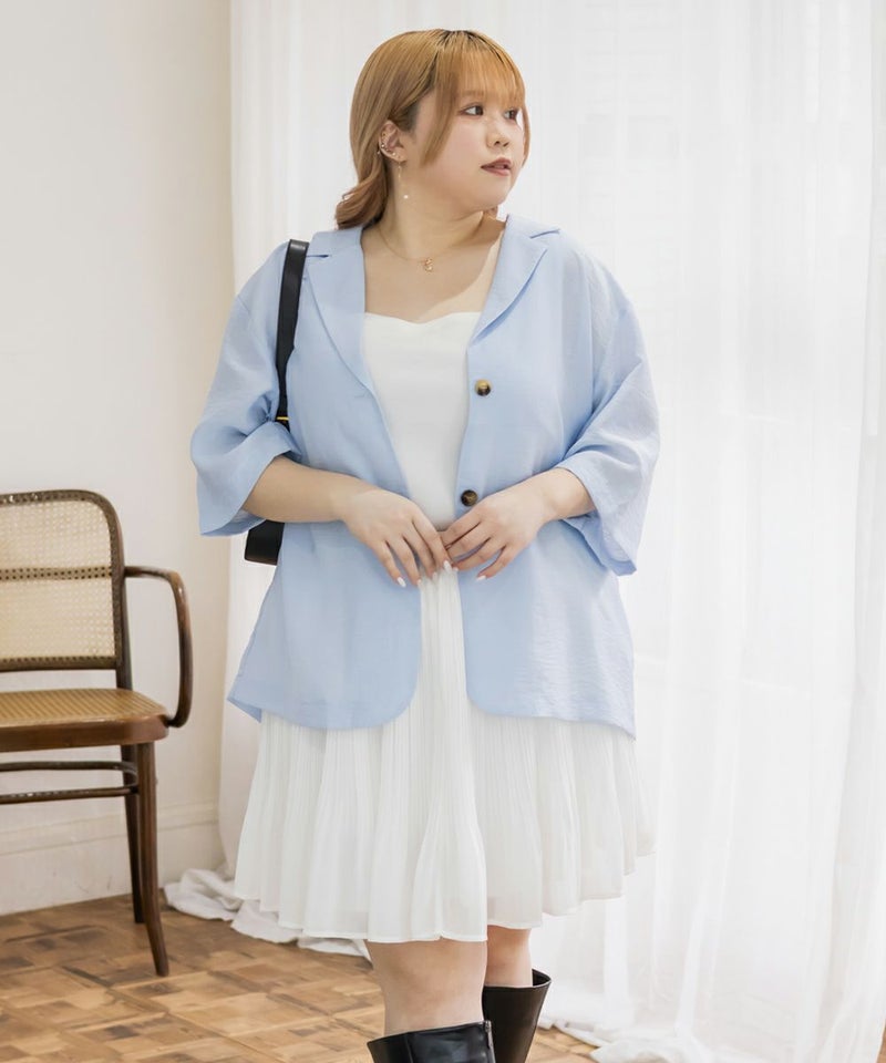 クレット 大きいサイズ 3L 4L 春 夏 トップス シアージャケット 半袖ジャケット サマージャケット 麻調5分袖シアーテーラードジャケット