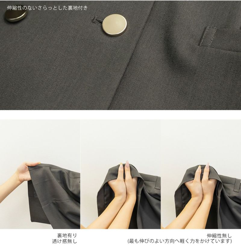 3Lサイズを着用して、ちょうどいいサイズ感で少しゆとりがあるオーバーシルエットのような着こなしができるデザインです!着丈もお尻あたりまであるので気になる部分をしっかりカバーしてくれます。パンツ、スカート、ワンピース、色々なアイテムと合わせやすい定番のジャケットデザインだから1枚あればいろいろなコーディネートで活躍できます。ちょっとキッチリ感を足したいシーンや通勤着としても良さそうです◎かっちりした印象だけじゃなくてワンピースや甘めアイテムとのあわせもおすすめです!トレンドに流されない王道ジャケットだから長いシーズン使えるのも嬉しいです!