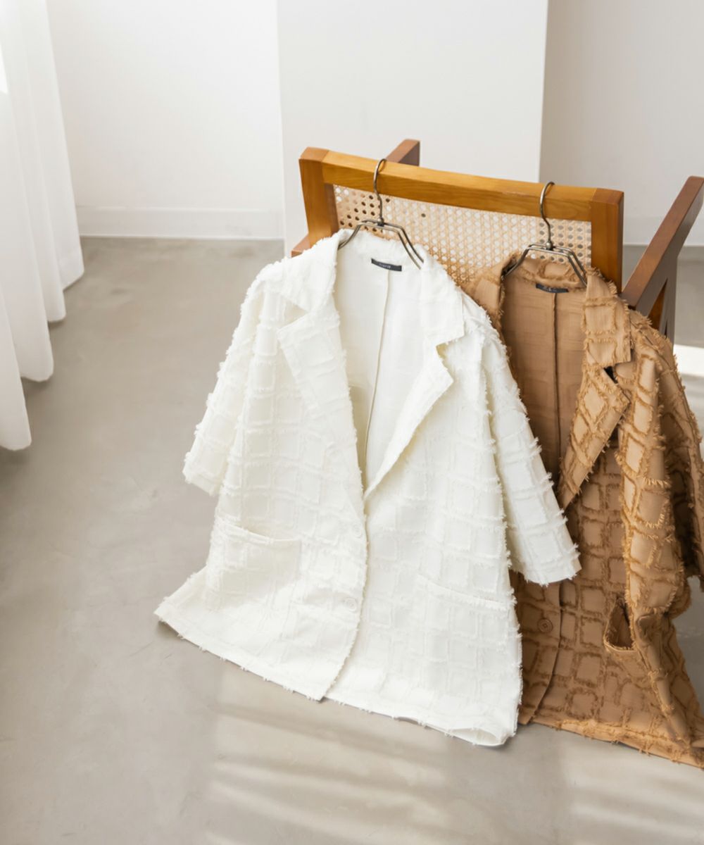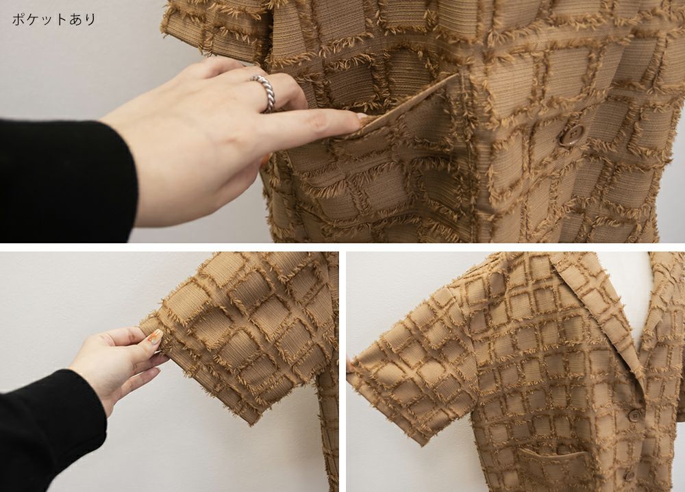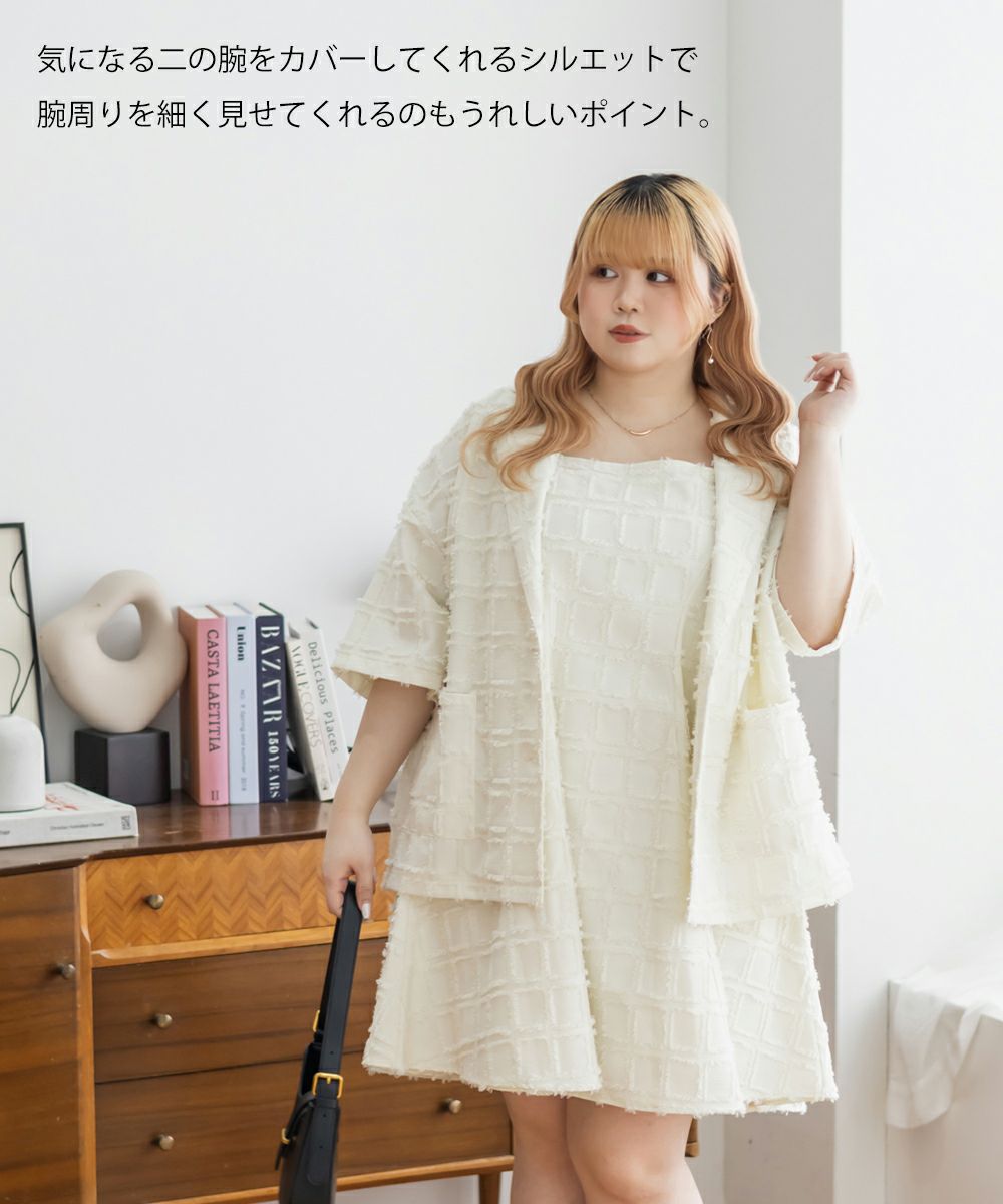 3Lを着用して程よくゆとりがあり、オーバーサイズのシルエットがこなれ感を演出してくれるジャケットでした!さらっと羽織るだけでコーデが一気におしゃれに仕上がるので、シンプルなインナーと合わせるだけでもサマになります。肩まわりや身幅に程よくゆとりがあり、厚手のトップスの上からでも無理なく着られるのが嬉しいポイントです。チェックのジャガード生地が高見えし、カジュアルにもきれいめにも着こなせるのが魅力。全体的にリラックス感がありながらも、シルエットがきれいに決まるので、ちょうどいい着用感でした◎