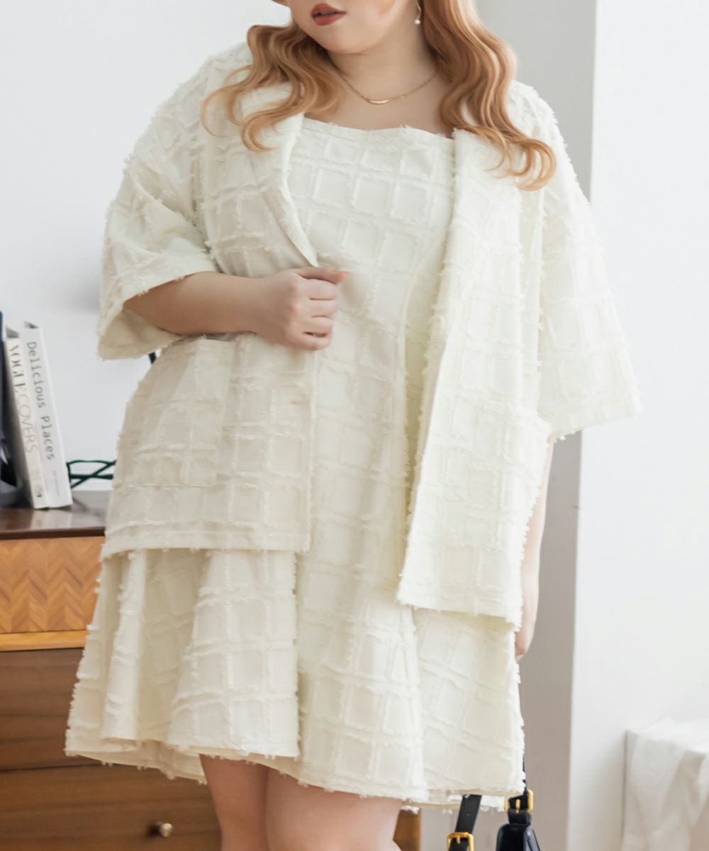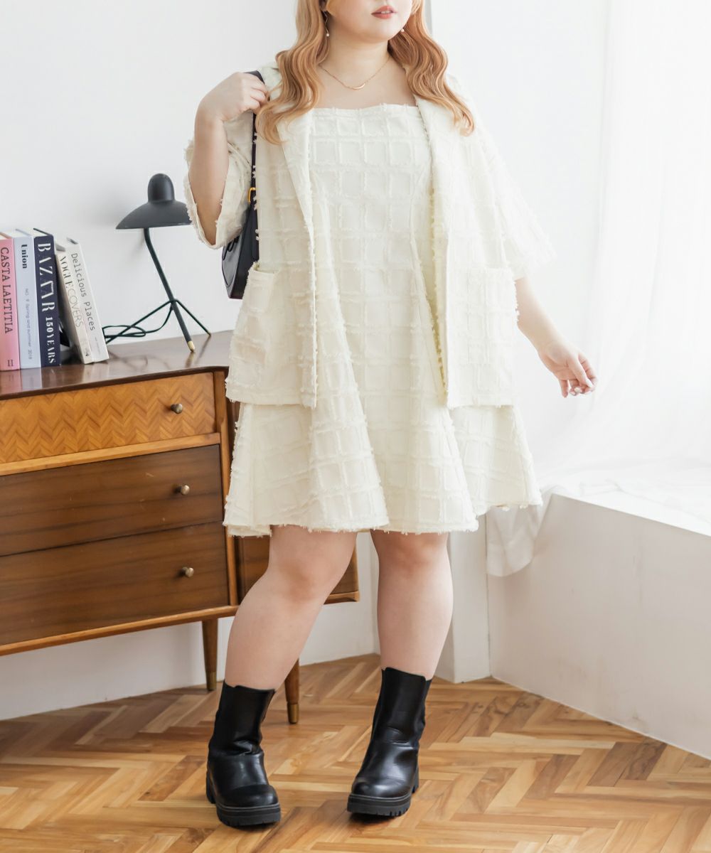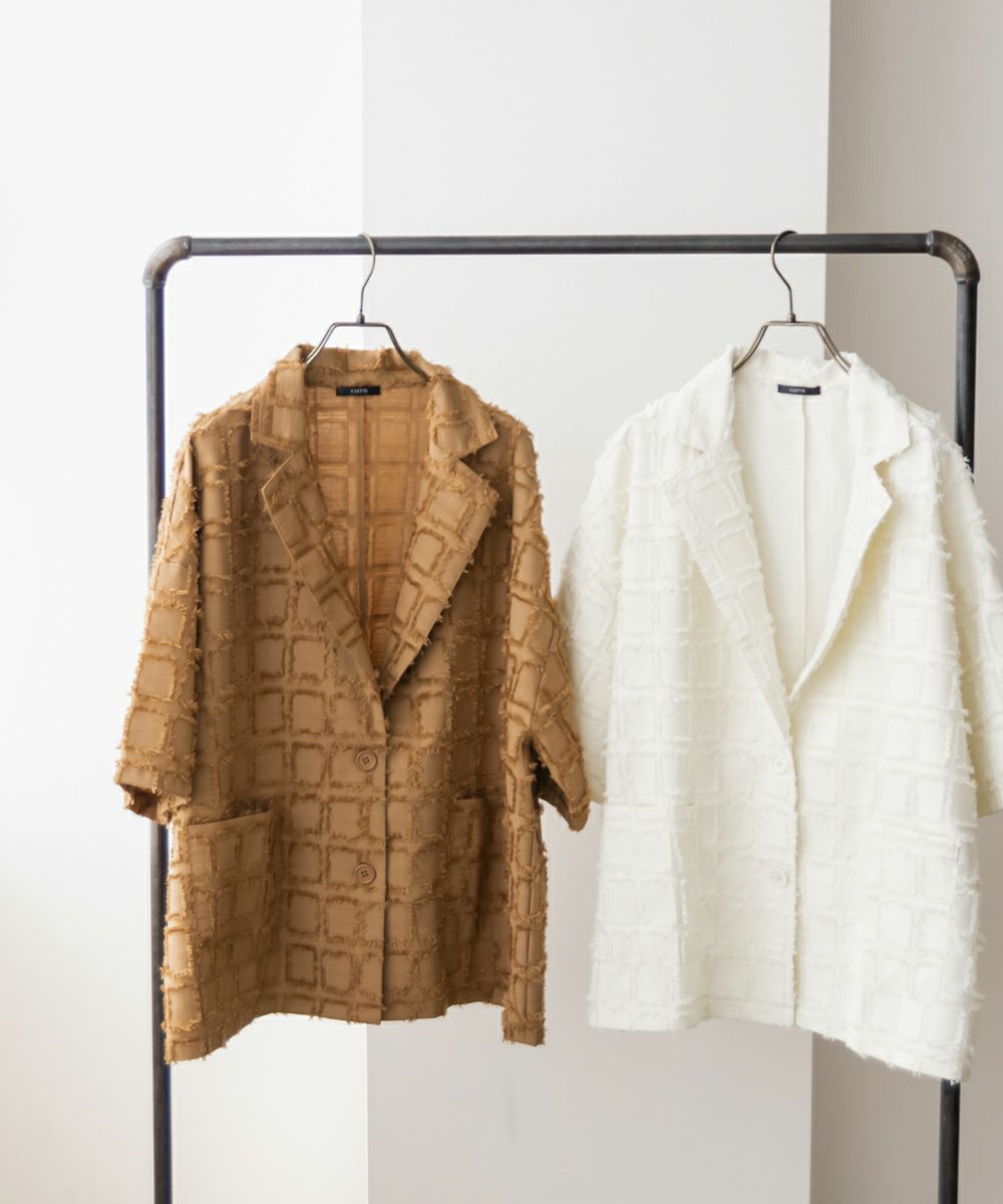 3Lを着用して程よくゆとりがあり、オーバーサイズのシルエットがこなれ感を演出してくれるジャケットでした!さらっと羽織るだけでコーデが一気におしゃれに仕上がるので、シンプルなインナーと合わせるだけでもサマになります。肩まわりや身幅に程よくゆとりがあり、厚手のトップスの上からでも無理なく着られるのが嬉しいポイントです。チェックのジャガード生地が高見えし、カジュアルにもきれいめにも着こなせるのが魅力。全体的にリラックス感がありながらも、シルエットがきれいに決まるので、ちょうどいい着用感でした◎