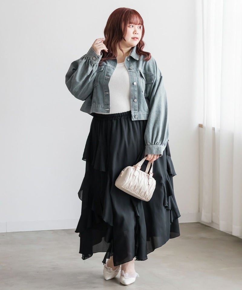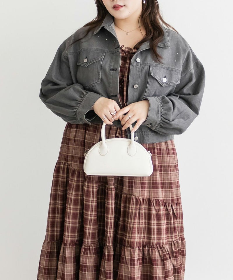 3Lサイズを着てちょうどいい着心地でした。少し軽めのデニムで楽な着心地でした!ゆるっと着ても可愛いと思うので好みに合わせてサイズを選んでみてもいいかもしれないです♪着回ししやすいちょうどいい丈感で、羽織としてロングシーズン使えるGジャンは1枚は持っておきたいマストアイテムです!カジュアル感のあるアイテムですが、ラインストーンがついていてさりげなくキラキラするのがポイントです◎キレイめなスラックスや甘めのスカートと合わせることでカジュアルダウンしすぎないコーディネートになってかわいいです!