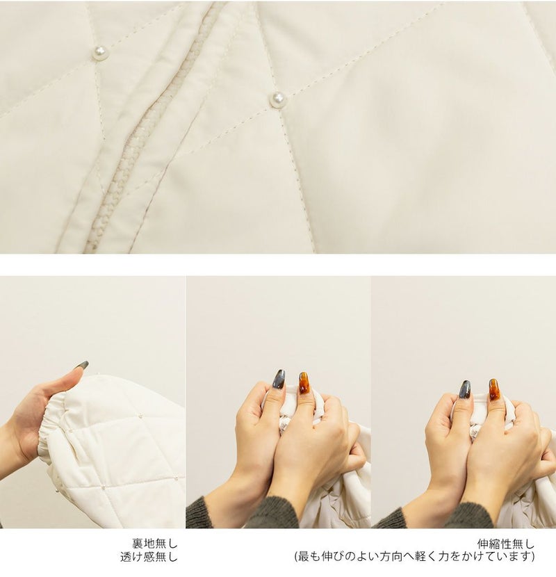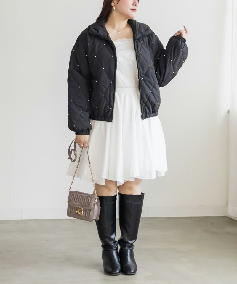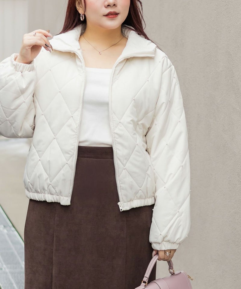 3Lサイズを着用してちょうどいいサイズ感でした!フェミニンさが目を惹くショートジャケットで、程よい丈感と軽くて着心地も抜群なアウターです◎インナー次第で長い季節お使いいただけます。デニム合わせはもちろん、ワンピースやミニスカートにもピッタリです♪キルティングとパールの組み合わせが高見えでかわいいです!写真映えするアイテムなので、お出かけや旅行などたくさん着回しできそう!