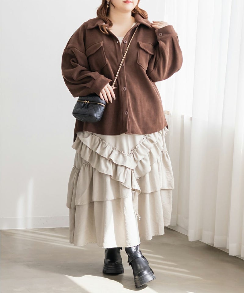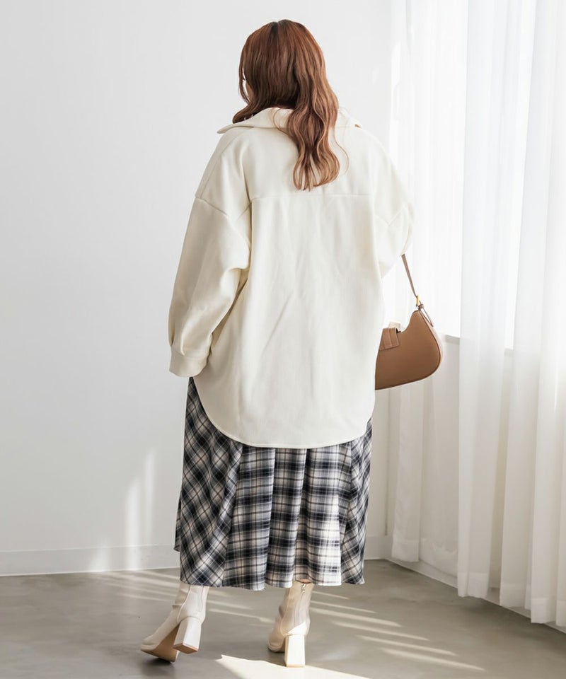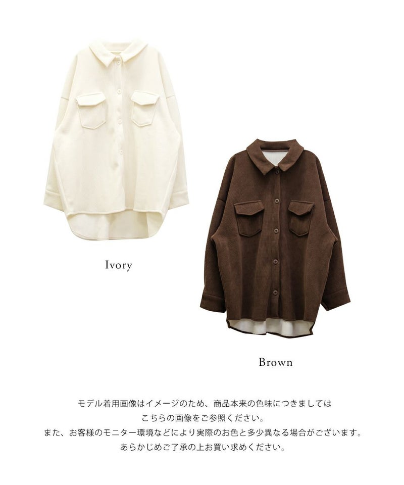 3Lサイズを着用して、ほどよく余裕を持ったサイズ感で着る事ができました。トレンド感のあるコーデュロイ素材なのでコーデに取り入れるだけで今っぽい印象になれそうです◎裏側は温かみのある起毛素材で防寒性もしっかりありました。アウターとして活躍しそうです!季節の変わり目にも活躍します◎ほどよくゆとりがあって中にニットも着る事ができるので冬も重宝します。カジュアルにまとめるのも良いですし、甘いアイテムと合わせてフェミニンに着るのもおすすめです♪