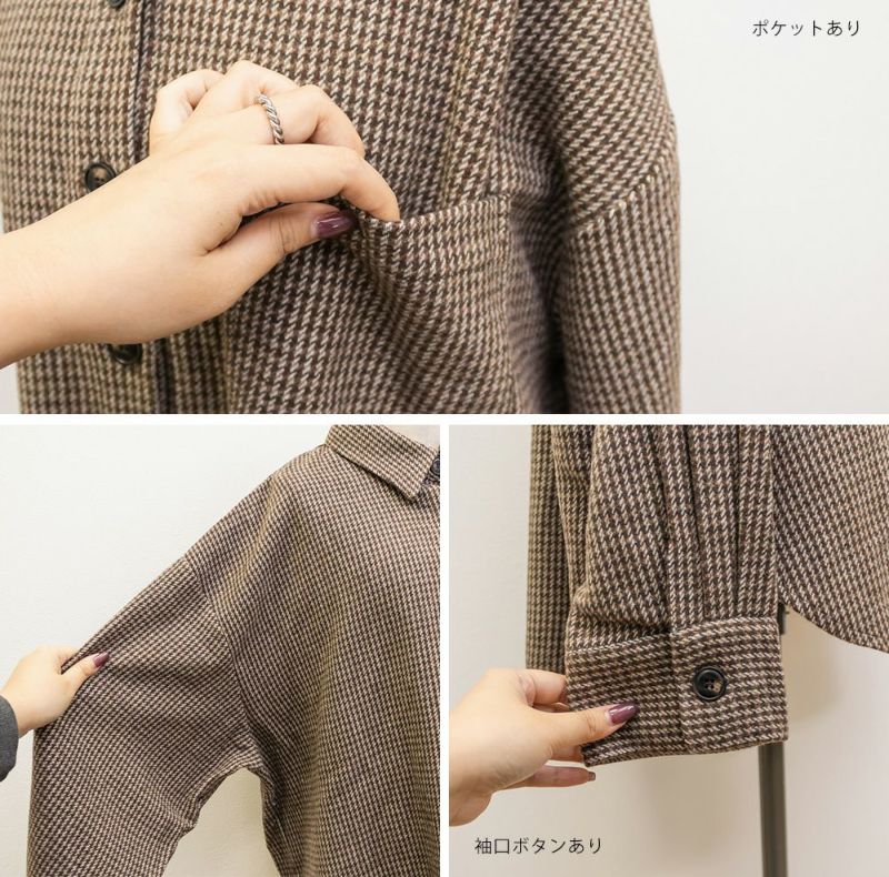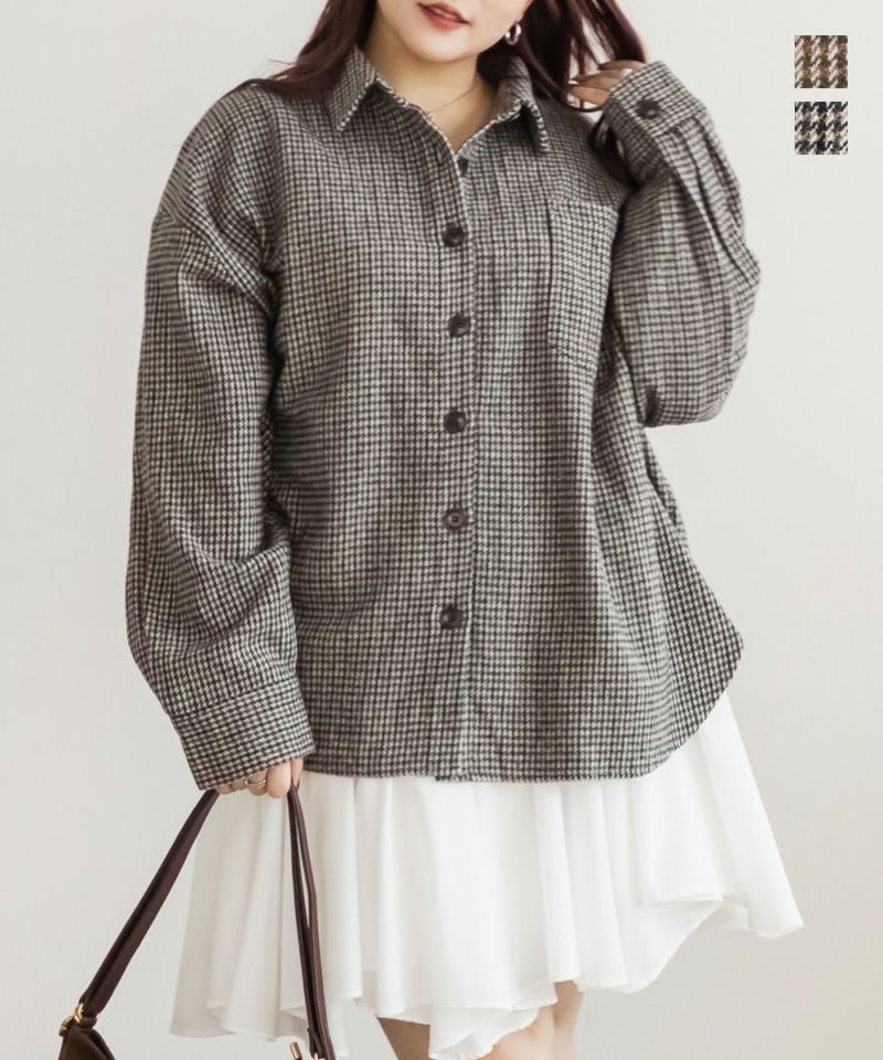 3Lサイズを着用しました。ぴったりのサイズ感でした。あたたかみのあるチェック柄と少し起毛がかった生地は秋冬にぴったりです!トップスとしても羽織としても着回しできるのも嬉しいポイントです◎長めの着丈で、腰回りもカバーしてくれます!