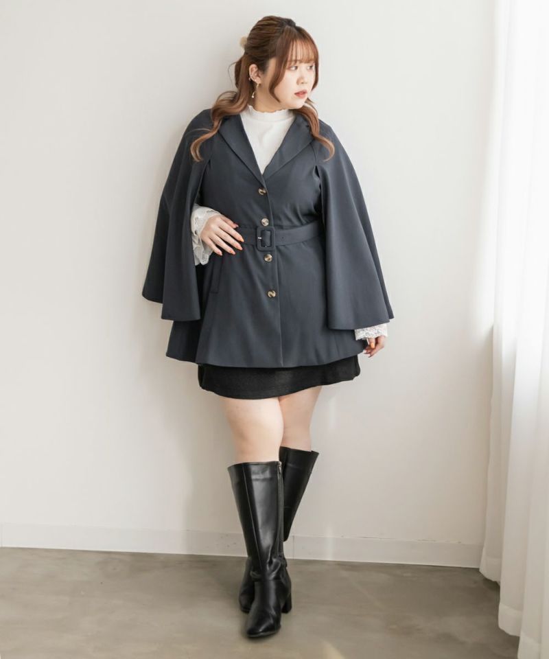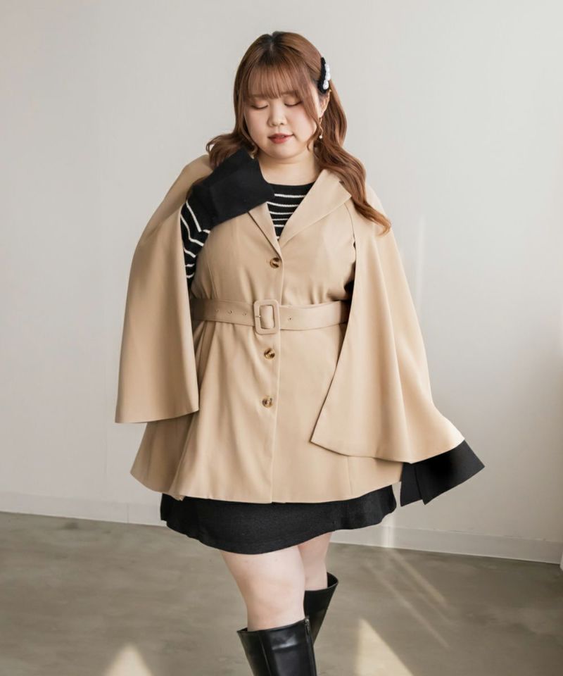 3Lを着てちょうどいいサイズ感でした。トレンドをしっかり押さえつつ、裏地付きなど高級感もあり防寒もできるので今季おすすめの優秀アウターです♪真冬は少し寒いかもですが、春秋のアウターとして重宝する1枚。ケープのデザインが今っぽくて、前から見たらテーラードジャケット風でお仕事などきちんとしたシーンにも使いやすいです!トレンチコートなどの代わりににもつかえる印象です。ポケットやベルト付きで実用性もデザイン性もあって可愛いジャケットです!着た時のバランスが可愛いミニボトムコーデやミニワンピースのアウター使いがおすすめです◎