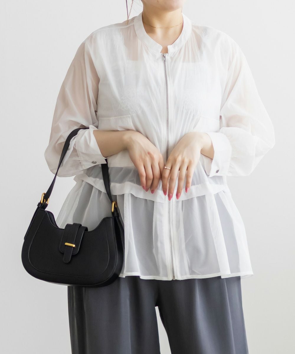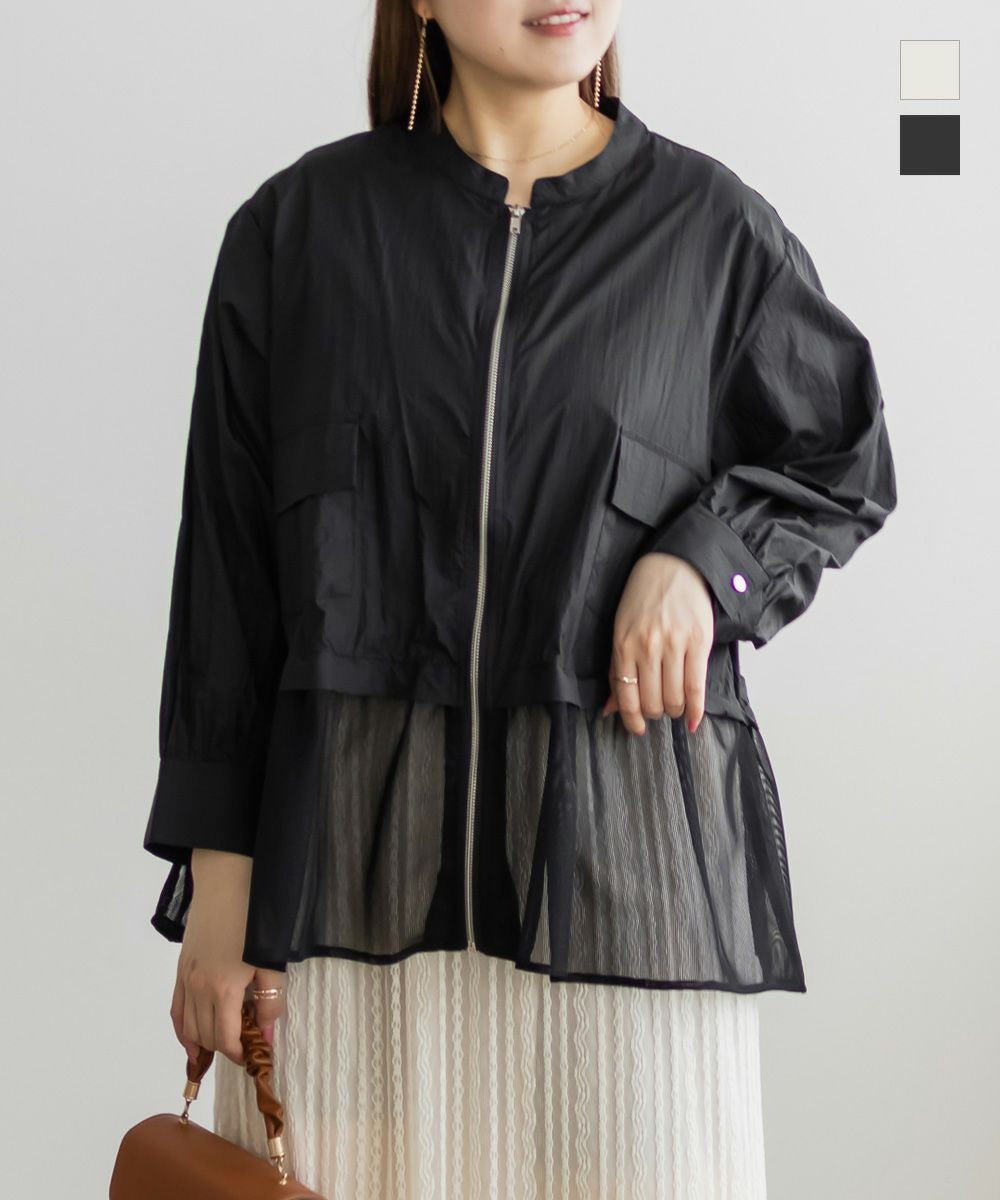 他の画像を見る ナイロンシアーペプラムジップブルゾン シャツ ペプラムシブラウス クレット 大きいサイズ 3L 4L 5L ナイロンシアーペプラムジップブルゾン 2025年4月下旬販売価格 ¥ 6,600 ↓ ¥ 3,520 税込 詳細を見る お気に入りに登録する