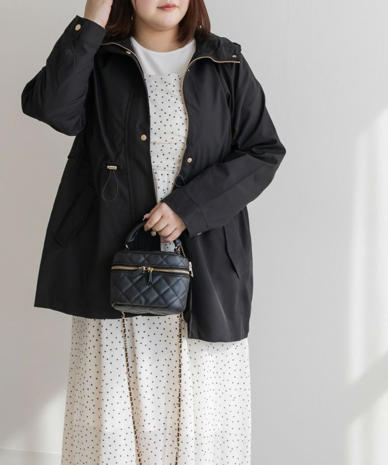 ウエストドロスト フード ブルゾン 撥水 カジュアル 春秋 軽アウター 無地 クレット プラスサイズ オフィス ウエストドロストフードブルゾン