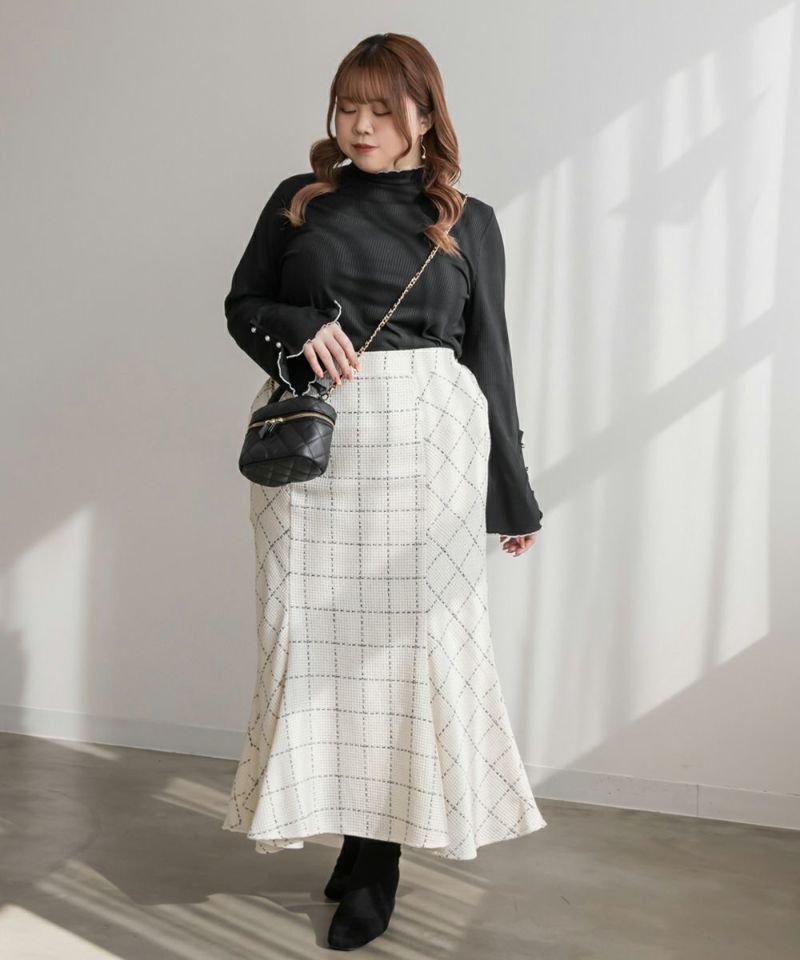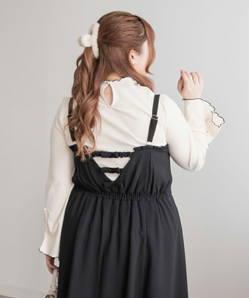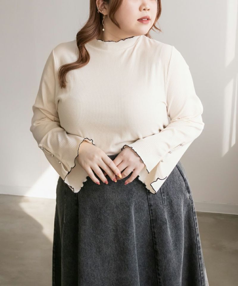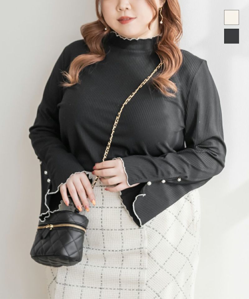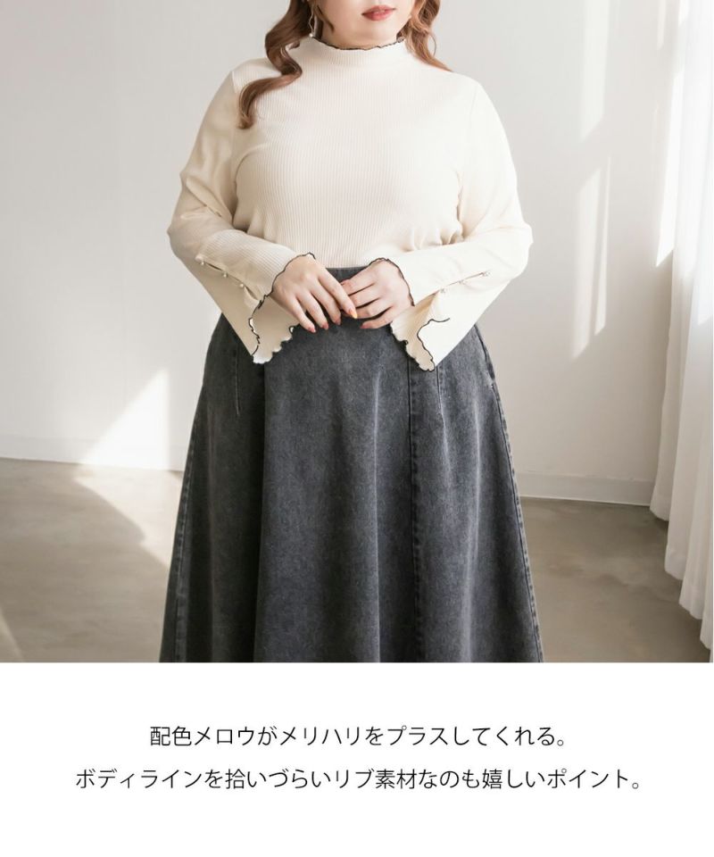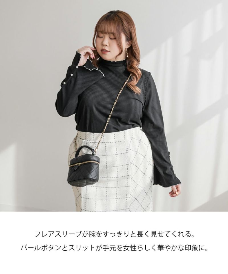 3Lを着て丁度いいサイズでした。身体にフィットしすぎないサイズ感だから、1枚でトップスとしても使えるのが嬉しいです!プチハイネックだけど伸縮性のある生地なので全く苦しくなかったです◎ワンピースのインナー使いにもおすすめなので、色々な着回しができます♪フレアスリーブとボタンデザインが上品で手元をきれいに見せてくれます!