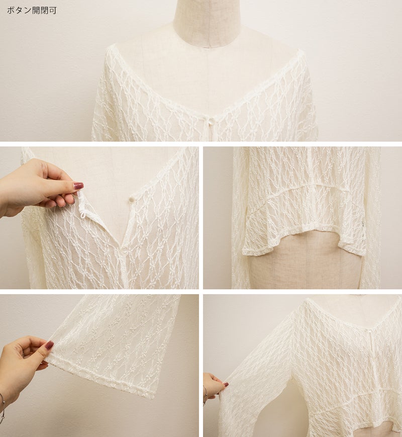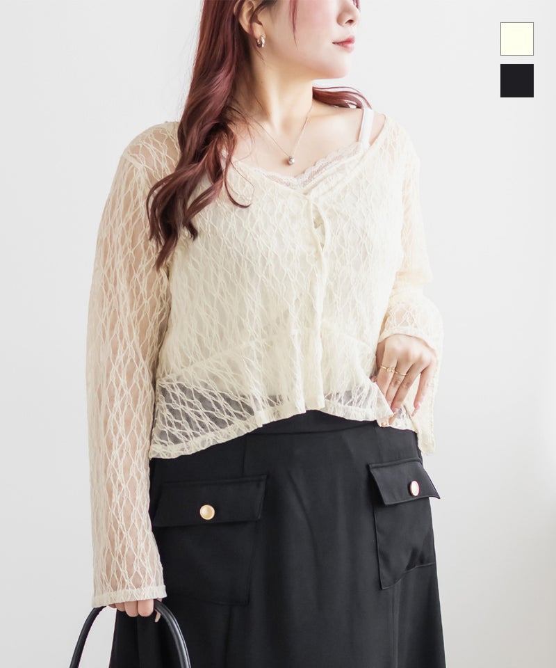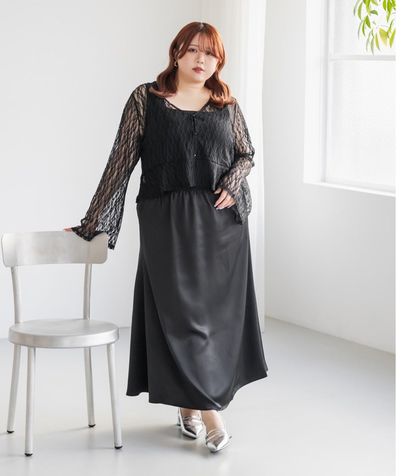 3Lサイズを着用して、身頃も腕まわりも窮屈感なくちょうどいい着心地でした◎さらっと涼しい肌あたりで、インナー付きなのもうれしいポイントです♪インナーには肌触りの良いカットソーの裏地がついているのもポイントです!透け感が上品で、カジュアルにもきれいめにも合わせやすく、一枚で華やかさを演出できる万能トップスです。気になる肩まわりもふんわりカバーしてくれるので、体型カバーを意識したい日にもぴったりでした♪長袖なので長いシーズン着まわせるのであると便利なアンサンブルです!