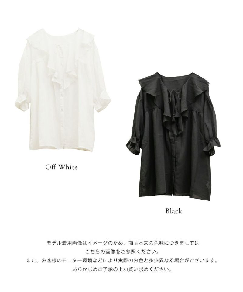 3Lサイズを着用してゆとりのあるサイズ感でした。ふわっと軽いガーゼ素材がとにかく気持ちよく、通気性もバッチリで春夏にぴったりです♪胸元のリボンやフリルが顔まわりを華やかに見せてくれて、1枚で映える主役級ブラウスです。長めの袖丈で二の腕を優しくカバーしてくれ、可愛さと体型カバーを両立してくれる嬉しいポイント。着るだけで甘さをプラスしてくれる、とっておきの一枚です◎裾を出してさらっとこなれ感のあるコーデや、甘めのスカートと合わせてフェミニンな着こなしもお勧めです!