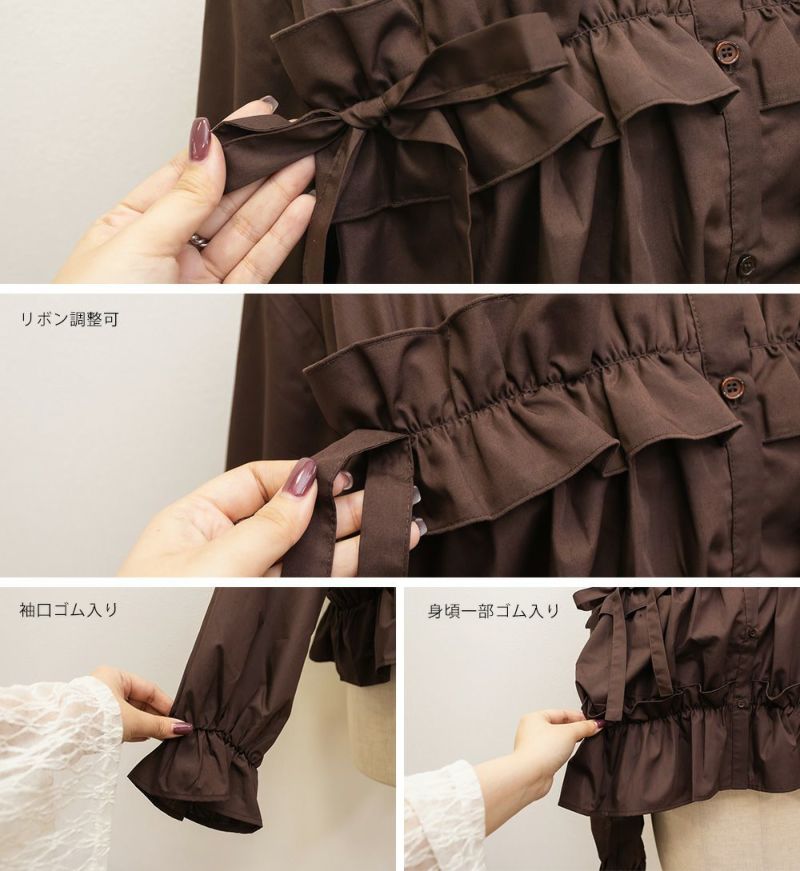リボン付きフリルギャザーブラウス リボン付きフリルギャザーブラウス