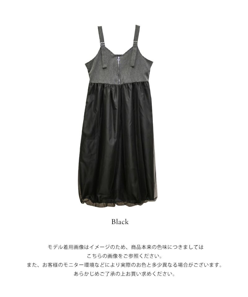3Lサイズを着用して、バストやウエスト周りもちょうどよく、バルーンシルエットでラインを拾わず楽な着心地でした◎フロントのジップがアクセントになっていて、甘さの中にもモード感をプラスしてくれます♪チュール切替のスカート部分はふんわり広がって、気になるヒップや太ももをしっかりカバー。デザイン性がありながらも1枚でさらっと着られるワンピースなので、コーデに迷わない優秀アイテムです♪スニーカーを合わせてカジュアルに着崩すのもおすすめです!インナー次第で雰囲気や季節感も変えて楽しめるワンピースです。