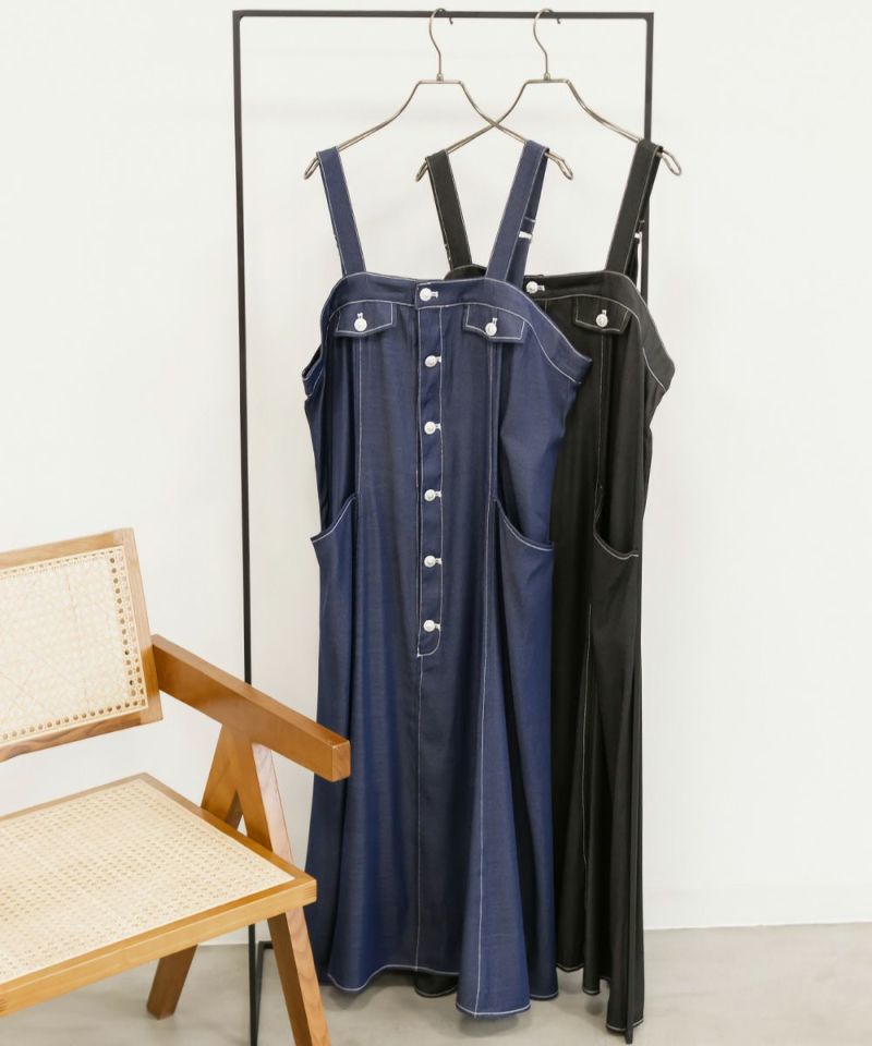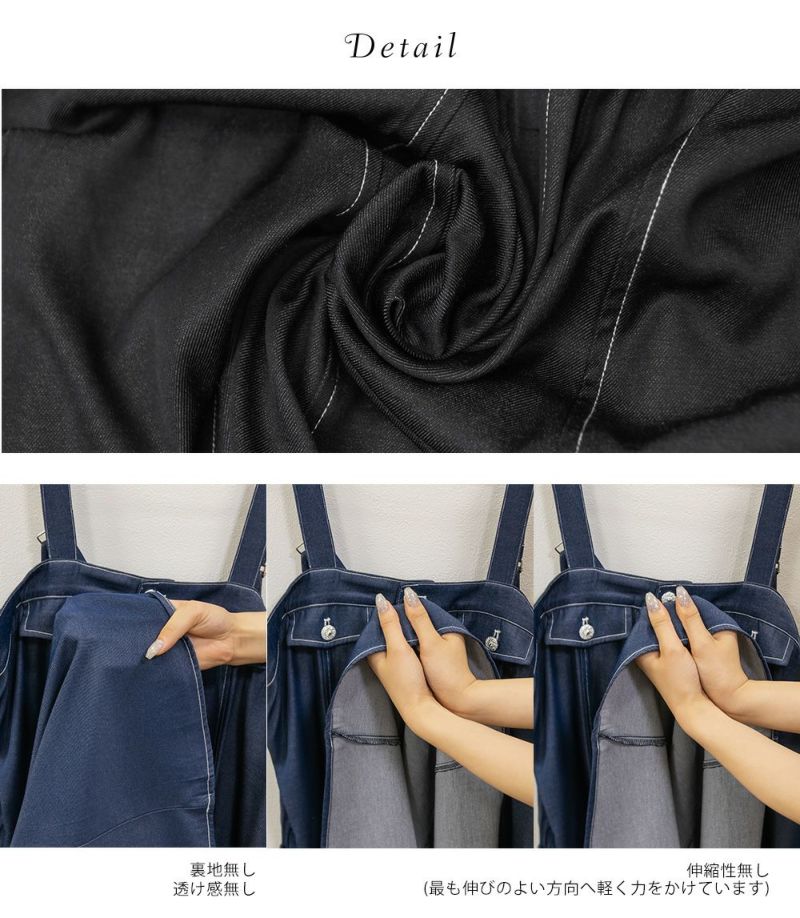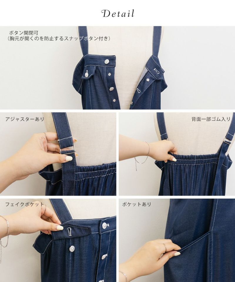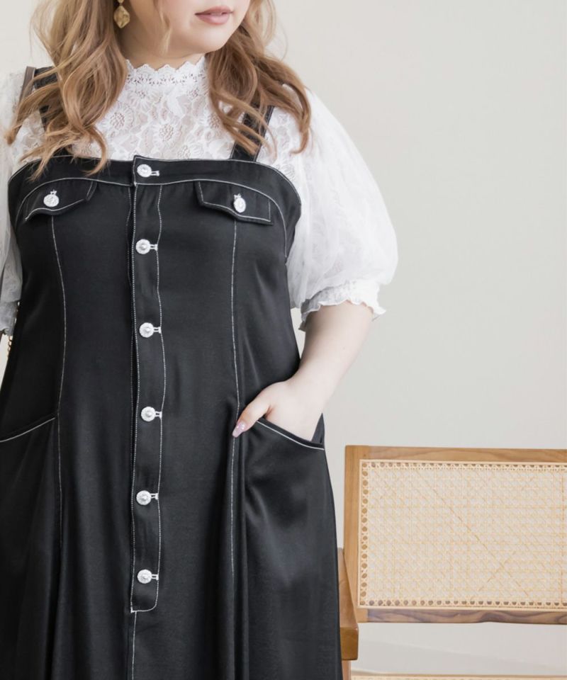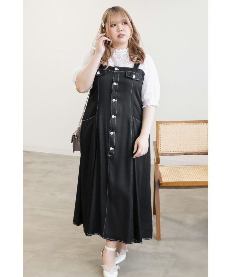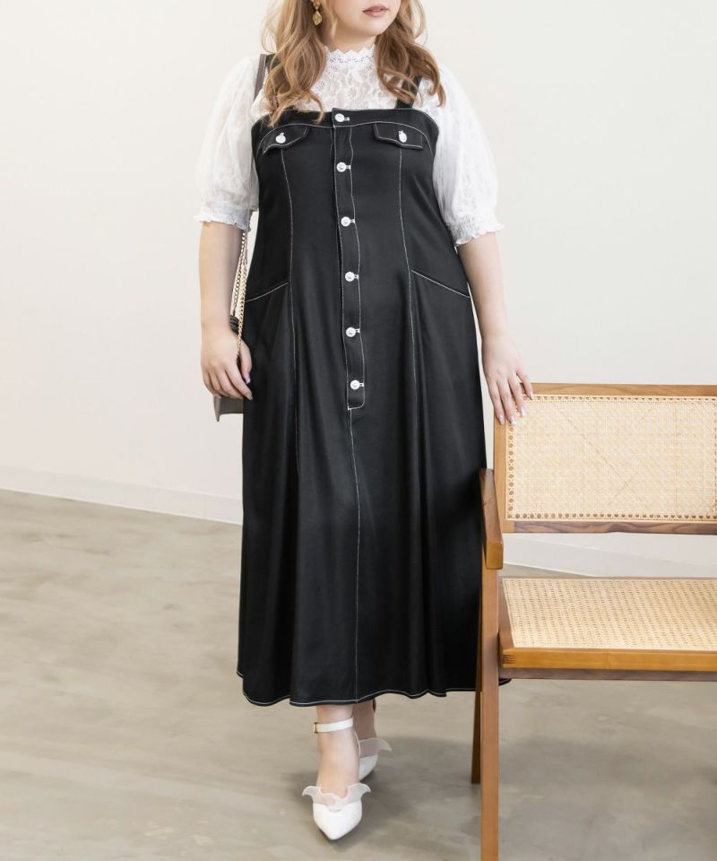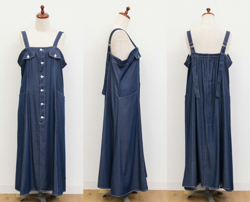 3Lを着てみてちょうどいいサイズでした。バストは窮屈感がないけれどすっきりとした見え方になれます!お腹周りはボタンやポケット、配色ステッチになった切替があることで目立たずにカバーされました!Aラインに広がる綺麗なシルエットで着やせができます。後ろ姿も肩紐が垂れていて可愛いので、どこから見られても華奢見えできるワンピースです♪季節問わず使えるデニム風の生地で、カジュアルにならずに綺麗めな雰囲気になれます!