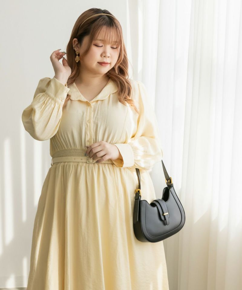 3Lサイズを着用してちょうどいいサイズ感でした。ウエストはシャーリングゴムになっていて着心地とってもらくちんでした!同色の細ベルトがついていて大人かわいい1枚です!キュッとしたウエストからフレアに広がるスカートがひらひら揺れてフェミニンな印象です。韓国っぽいシャツ襟が今っぽくて1枚で着映えるワンピース!程よく薄手の生地なので、秋~春までたくさん使えます!デートやお出かけにお勧めのワンピースです♪