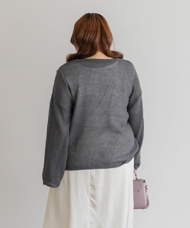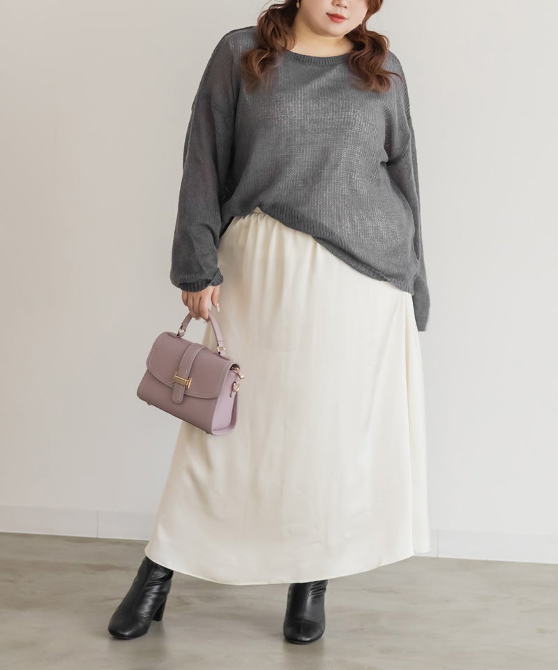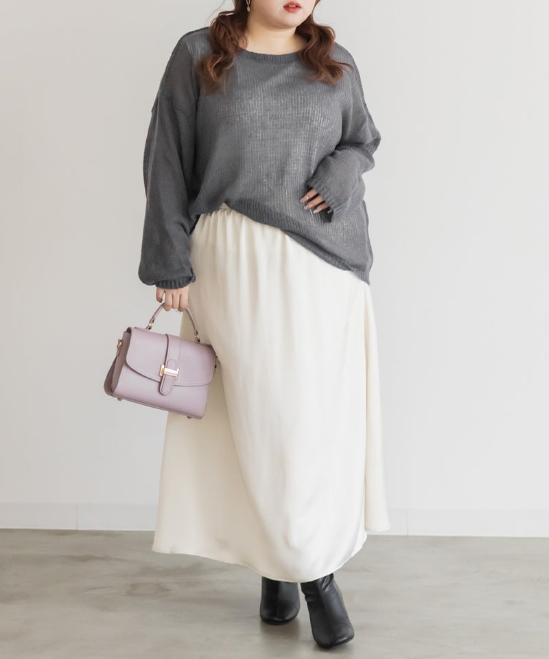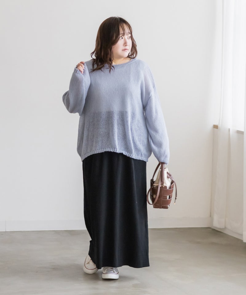 3Lを着用しました!ピタッとしないサイズ感で、ゆるっときられるのが女性らしく可愛いです◎シアー感が今っぽくて絶妙な抜け感が大人っぽくネックラインは程よく開いていて着やすいです。オトナっぽい雰囲気のニットで、セットですがそれぞれ単品でももちろん秋~春と長く使えるのもポイントです。薄手のシアーニットなので、ごわつかず、タックインしても着やすい印象です!インナーのタンクトップは肩紐やネック周りまでしっかりカバーしてくれるので安心感があります!コーディネートをたくさん楽しみたい方にお勧めです♪