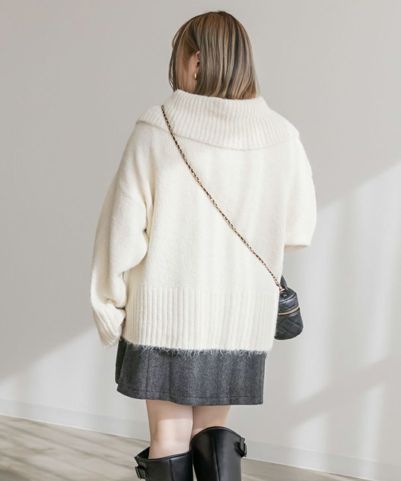 アルパカ風 襟付き ニット プルオーバー 長袖 秋冬 トレンド 無地 カジュアル フェミニン クレット 3L 4L アルパカ風襟付きニットプルオーバー