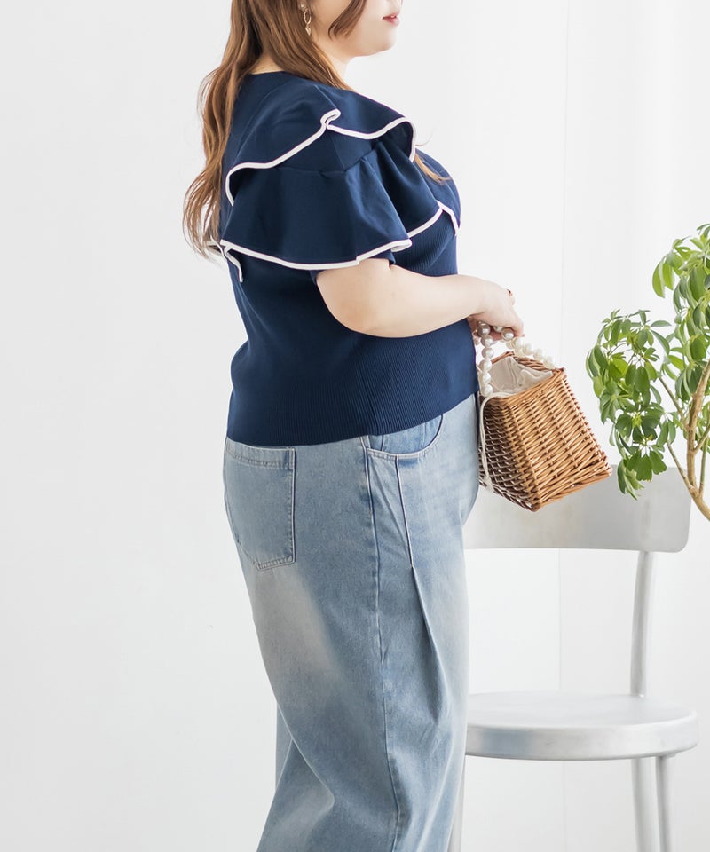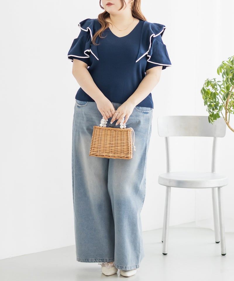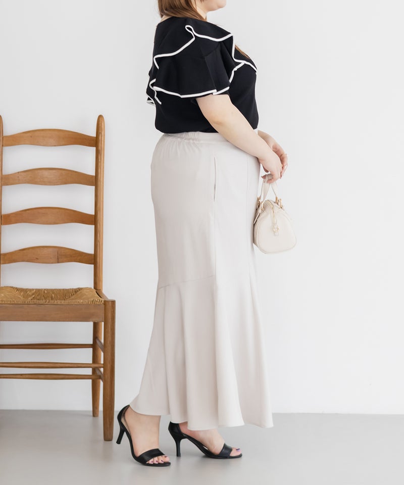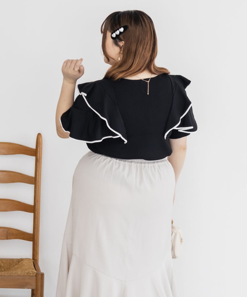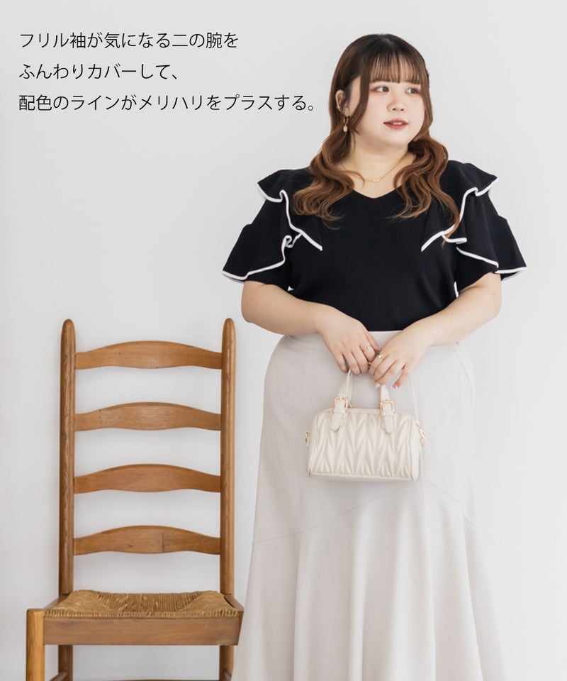 3Lサイズを着用しましたが、身頃も袖も窮屈感なくちょうどいい着心地でした!身体に優しくフィットするリブニット素材で、すっきり見えるのにストレスフリーな着用感◎夏でも着られるサマーニットで、カジュアルにならず上品なのが嬉しいです。配色ラインが甘さを引き締めてくれるので、大人っぽくもガーリーにも着こなせて、コーデの主役にぴったりです!