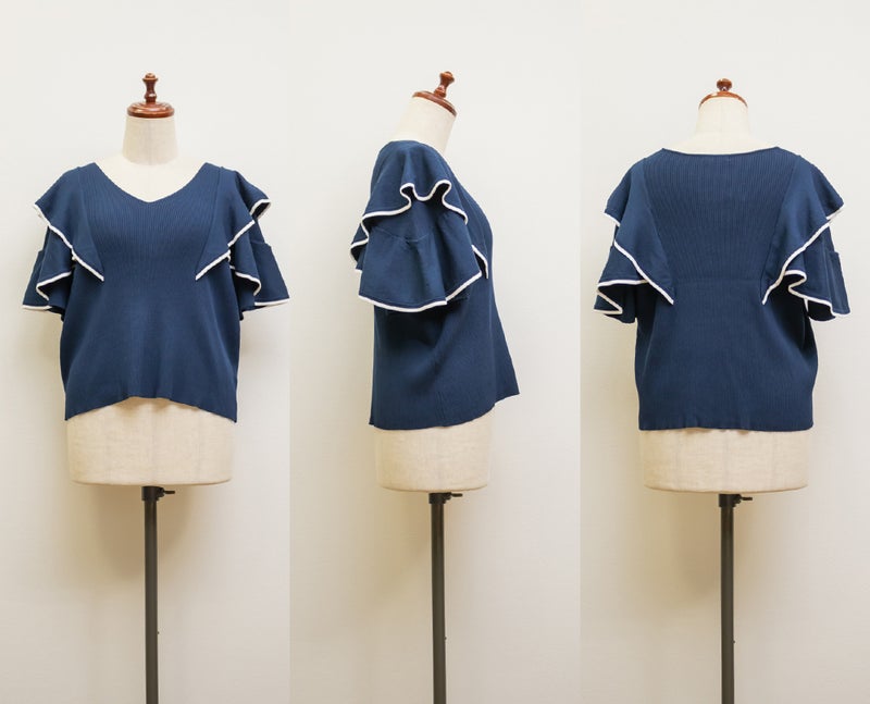これは買って大正解でした。本当に可愛いです😭😭 腕の太い部分はフリルで誤魔化してくれているのでとてもありがたいですが、袖が割と短いので、肘上のお肉が隠せるくらいの長さがあればもっと良かったなと思いました。 オフィスなど室内で着る分には問題なく着れそうですが、サマーニットとはいえ生地が割としっかりしているので、真夏に外で着るのはかなり暑いかなぁとも思います。 ですが本当に可愛いので、この夏大活躍の予感です🔥