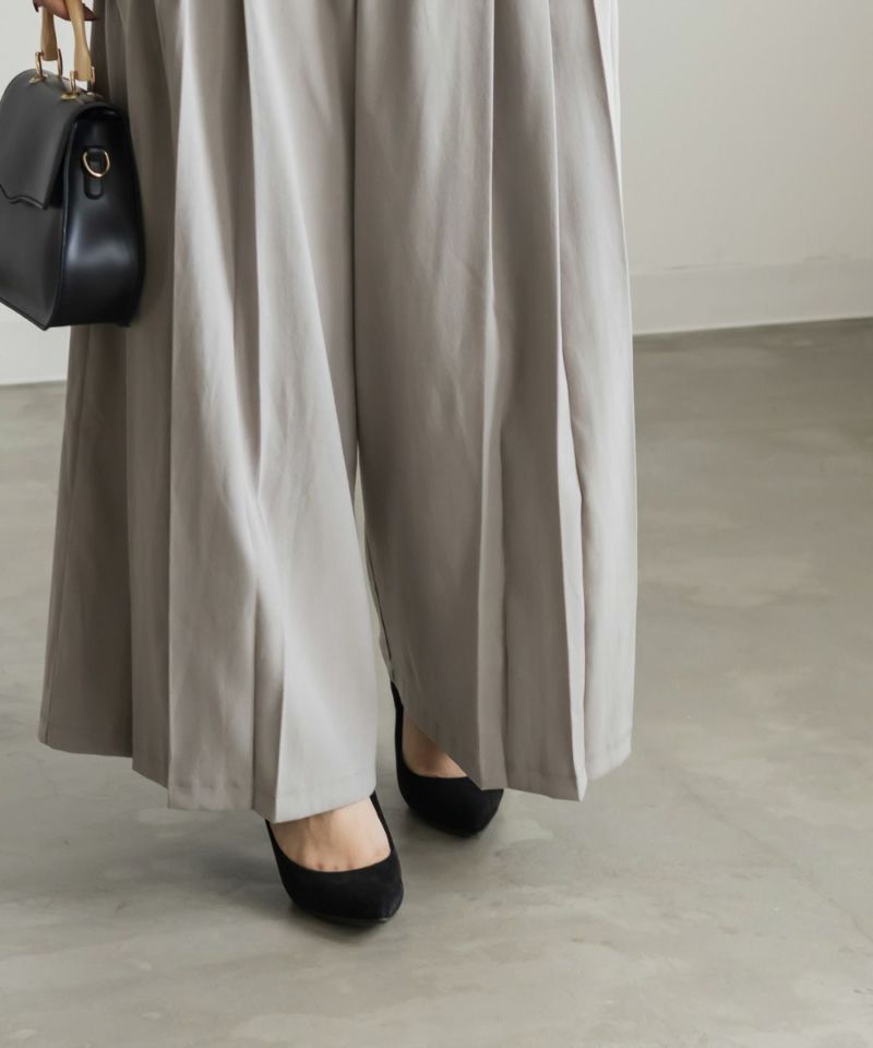 3Lを着用してちょうどいいサイズでした。程よくゆとりがありつつすっきり見えるシルエットで、楽ちんな着心地です!後ろウエストゴムでストレスフリーに穿けて、長時間のお出かけにも快適です◎季節感のあるスエードっぽい生地ですが、薄手で軽いので、動きやすさもありました。プリーツデザインがお洒落でシンプルなトップスとも相性がいいのでスタイリングに悩まず着回しが出来ます。オールシーズン使える便利なワイドパンツは脚のラインを拾いずらくリラックスして着られるのに、きちんと見えするのも嬉しいです。デイリーからお仕事までつかえる万能な1本です。