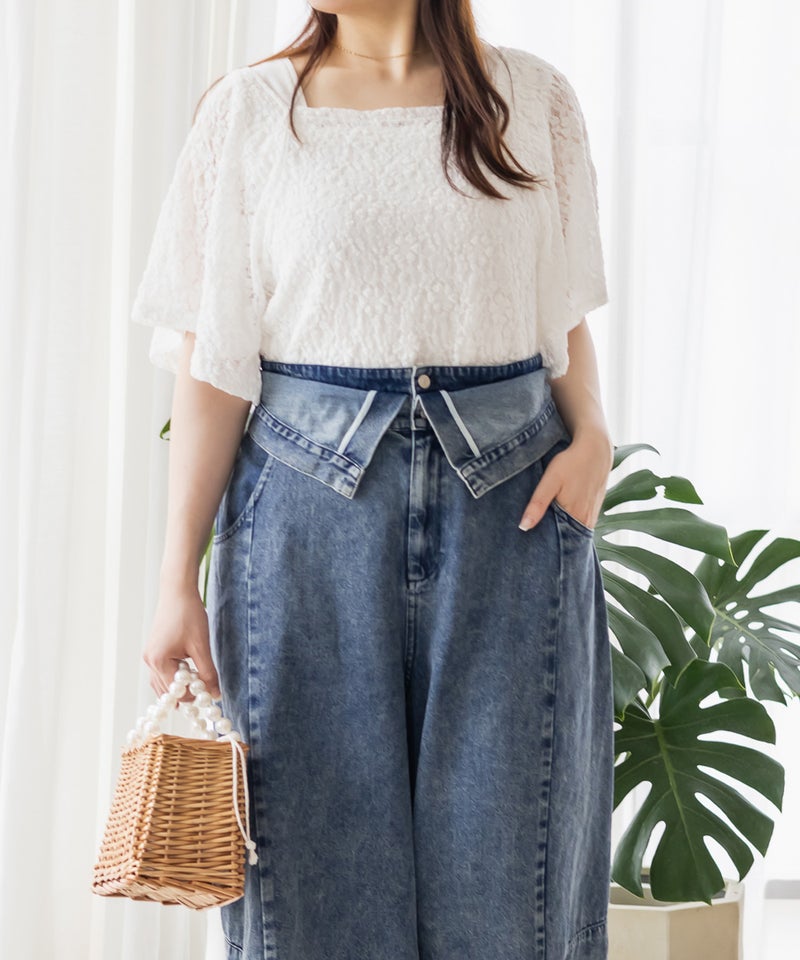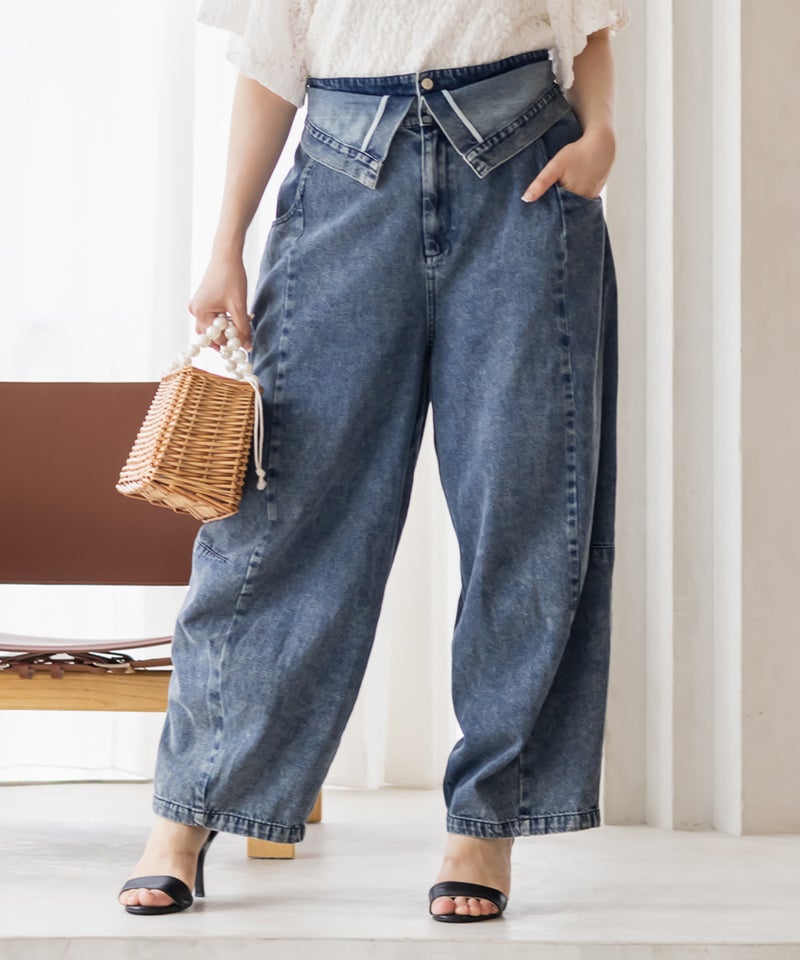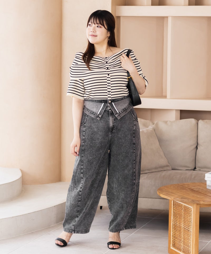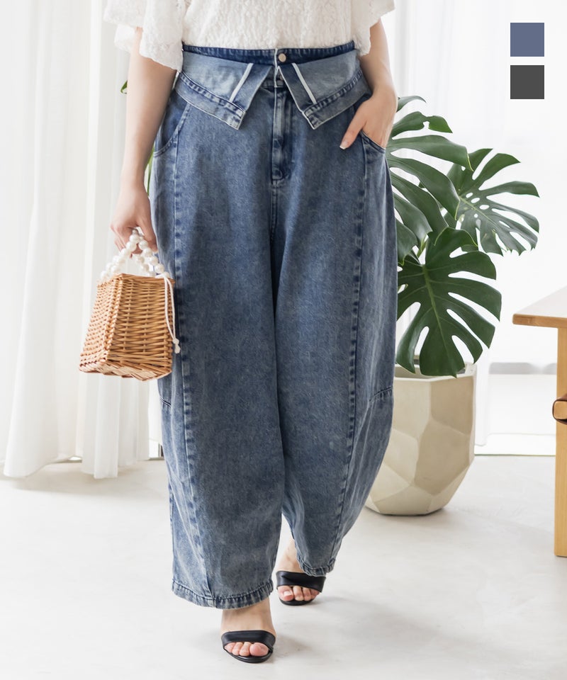 3Lサイズを着用して、ラクに動けました!ダブルウエストデザインが程よくお腹まわりをカバーしてくれて、インスタイルでおしゃれ見えします♪ハイウエストでかなりスタイルアップして見えて、トップスインとの相性も抜群です!もちろんインせずに着ても可愛いデニムシルエット・カラーなので着回し力も高いです。脚のラインを拾わないカーブ感で、簡単に今っぽい雰囲気になれる1本です!