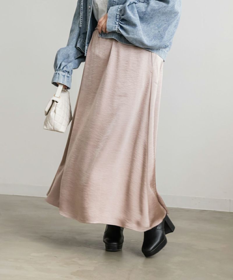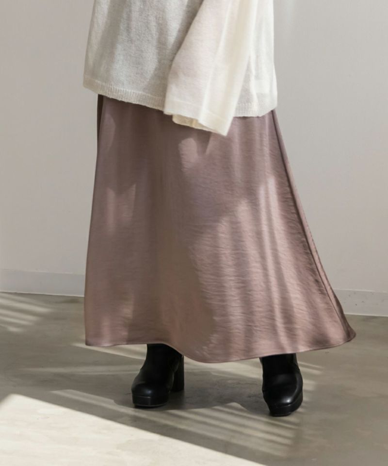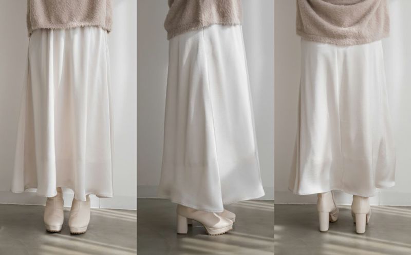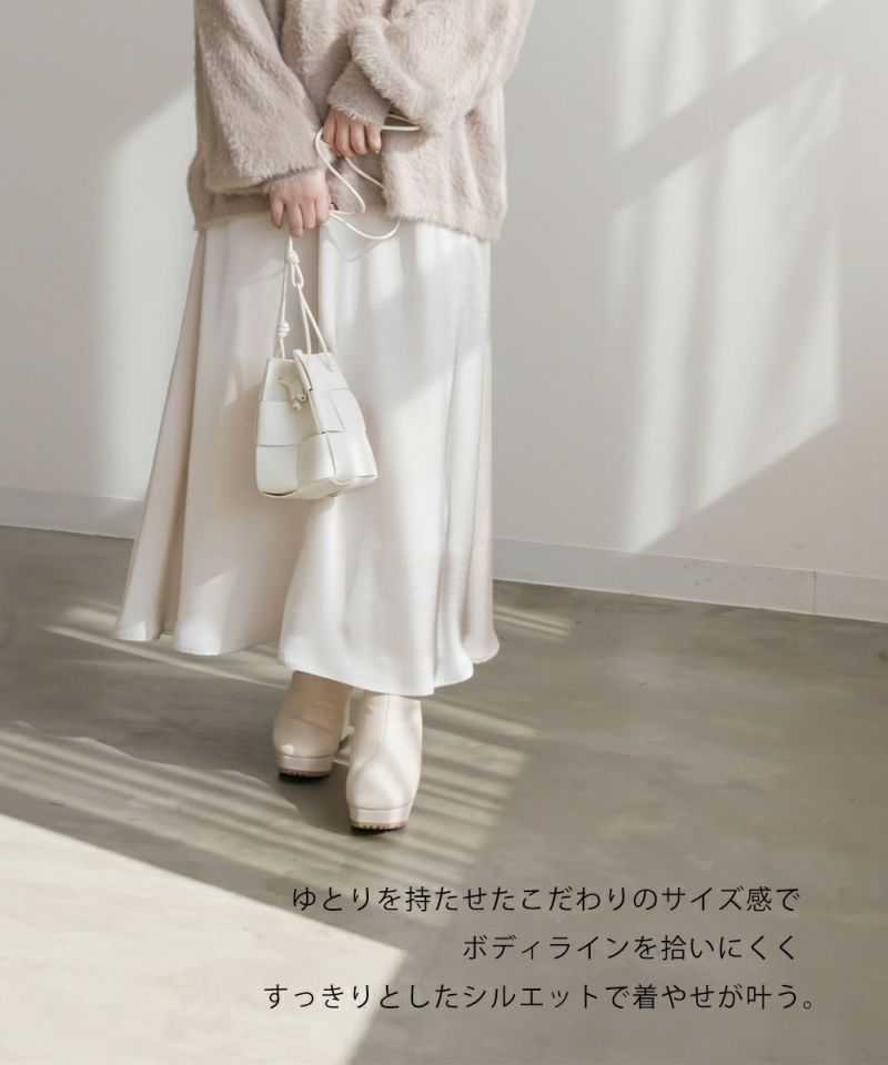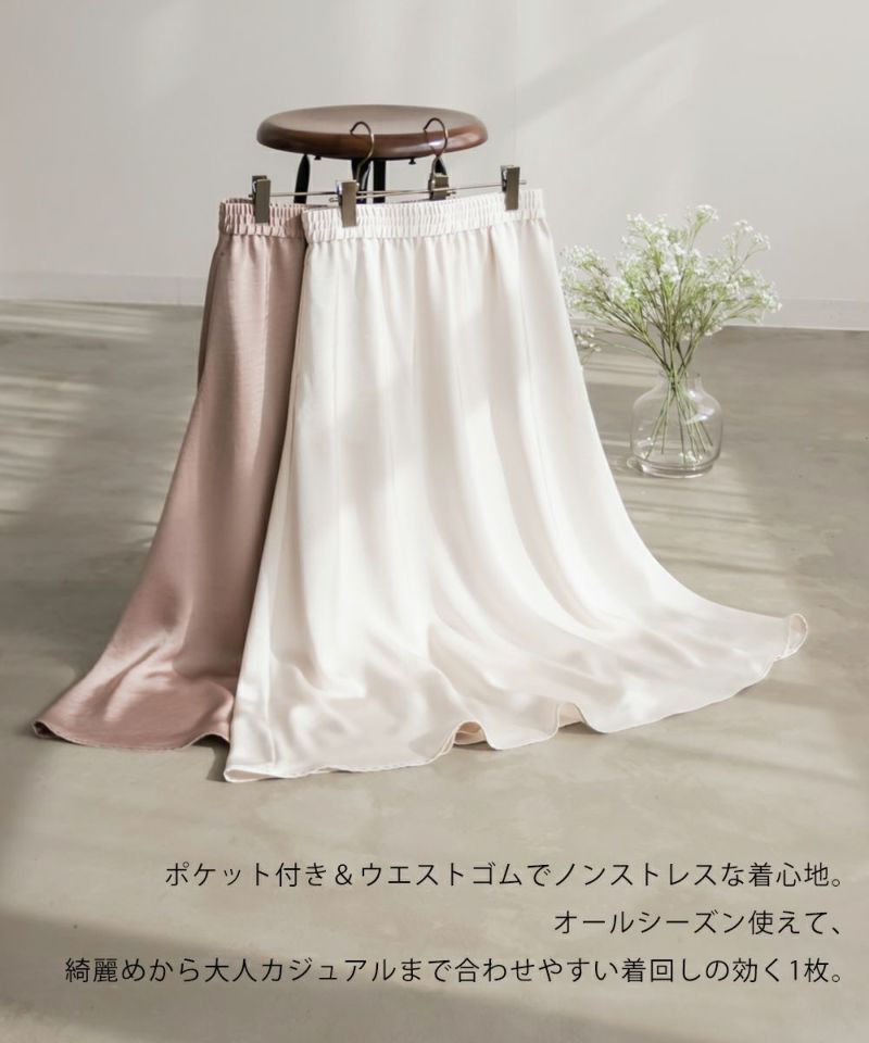 LLを着用してちょうどいい着心地でした。ウエストはしっかりとした総ゴムで着脱も問題なくできました◎ウエストからギャザーがたっぷり入っているので、落ち感のあるサテン生地でも肉感を拾いにくく綺麗なシルエットで着られました!今っぽいサテンスカートでこのサイズ感のものはなかなか無いので嬉しいです♪ゆるっとしたトップスと合わせて大人っぽくこなれ感のある着こなしがお勧めです!Tシャツやスエットと合わせてカジュアルに着ても可愛い!薄手だけど冬のニットと合わせるのもおすすめなのでオールシーズン着たいスカートです!