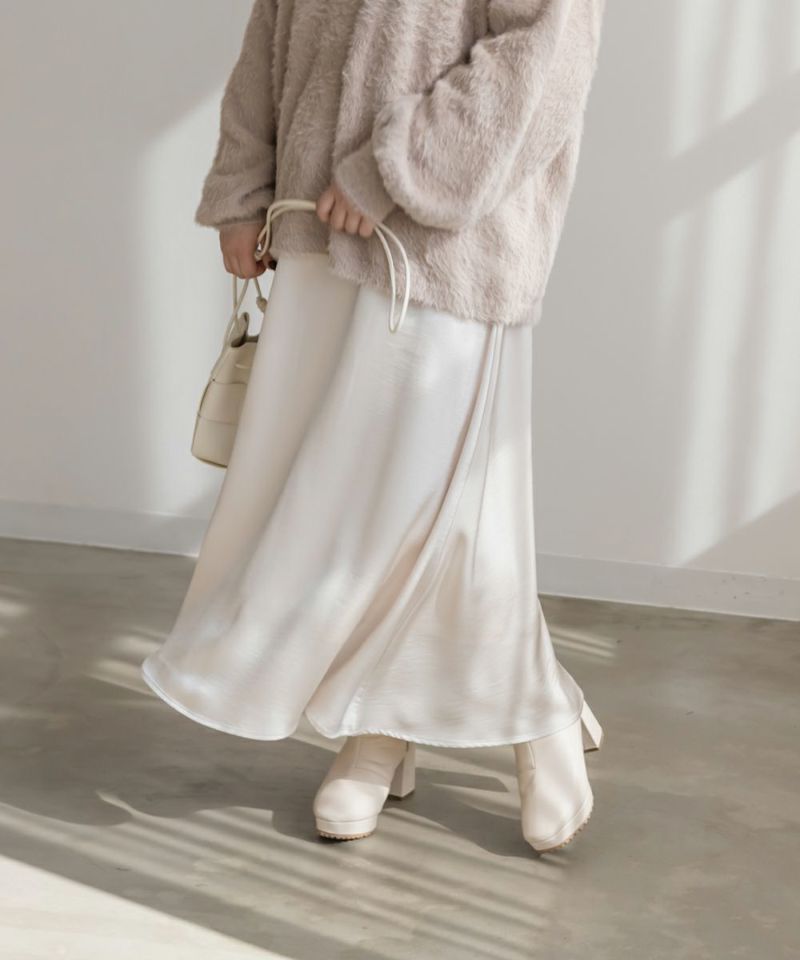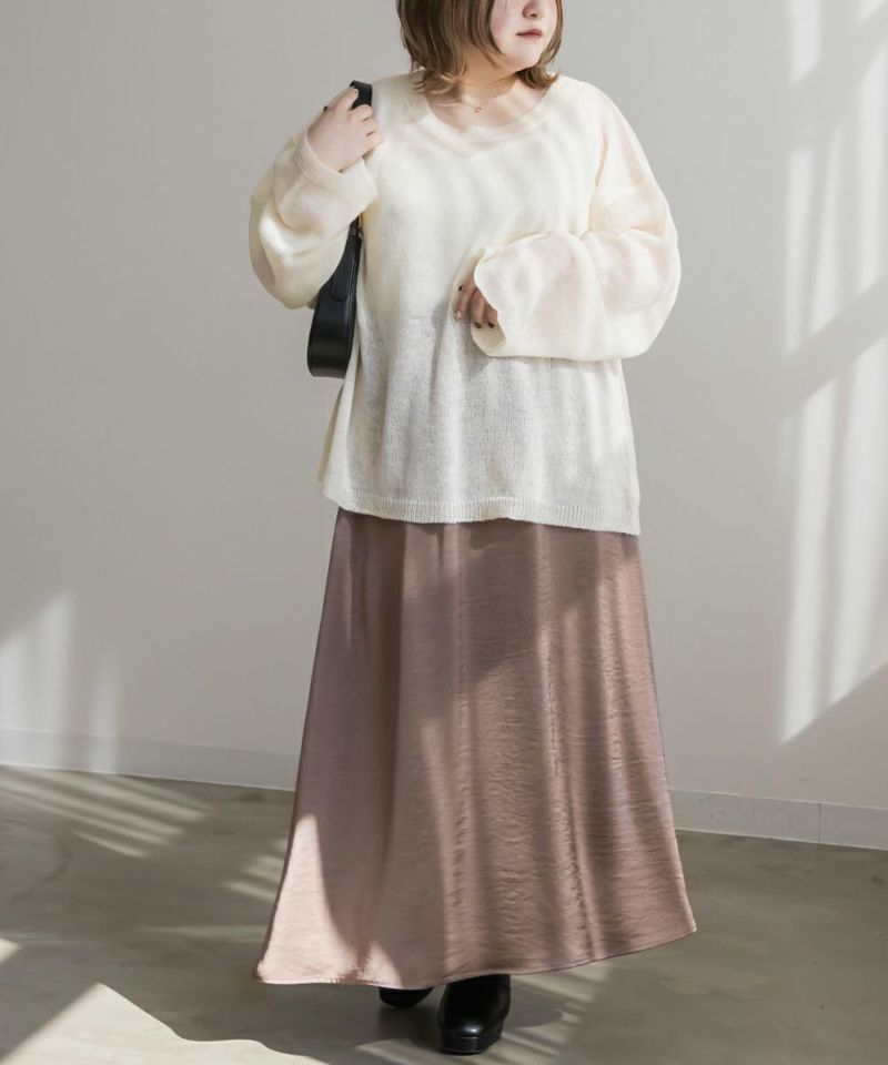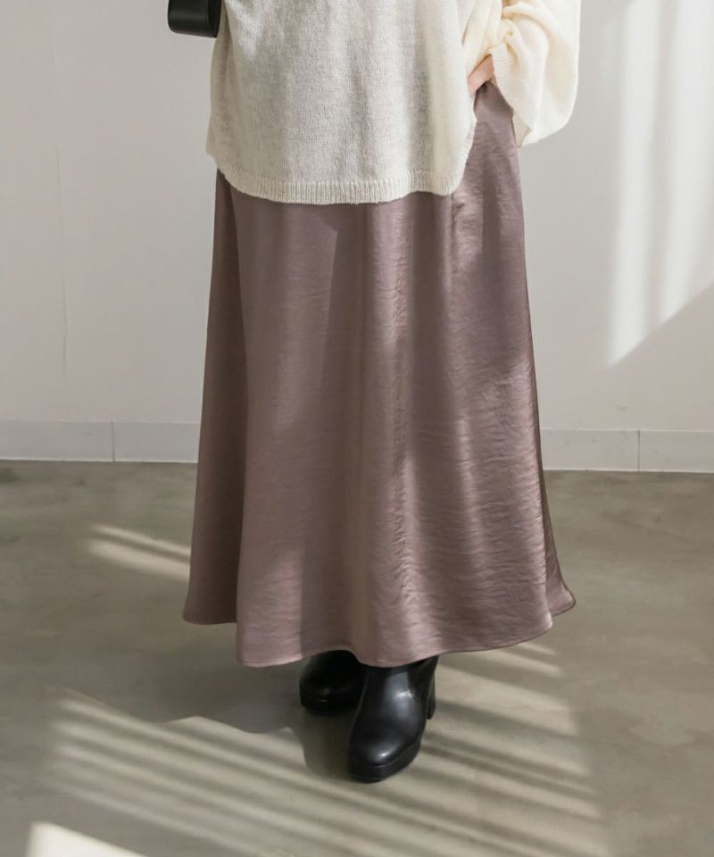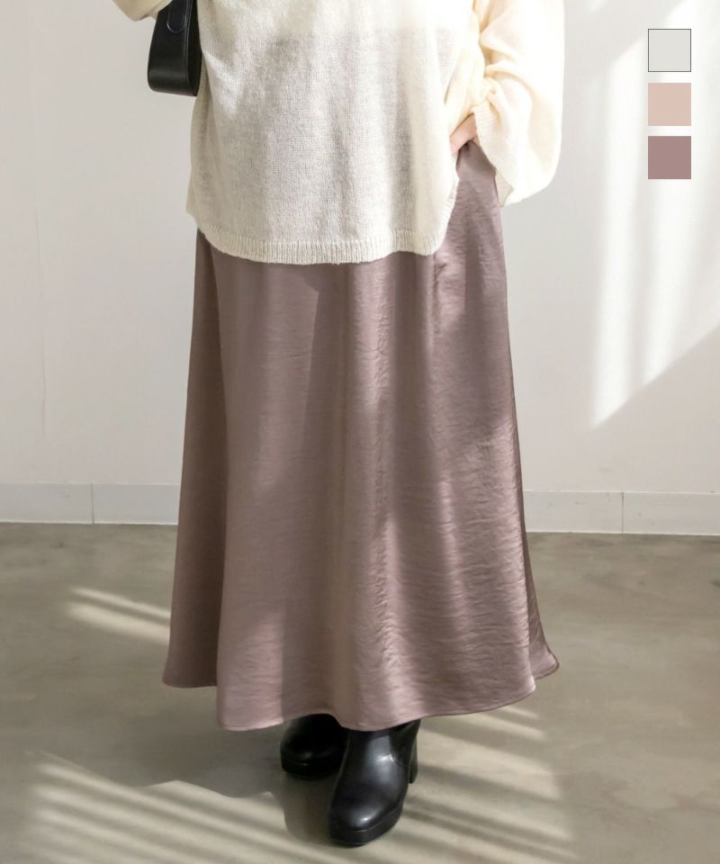 LLを着用してちょうどいい着心地でした。ウエストはしっかりとした総ゴムで着脱も問題なくできました◎ウエストからギャザーがたっぷり入っているので、落ち感のあるサテン生地でも肉感を拾いにくく綺麗なシルエットで着られました!今っぽいサテンスカートでこのサイズ感のものはなかなか無いので嬉しいです♪ゆるっとしたトップスと合わせて大人っぽくこなれ感のある着こなしがお勧めです!Tシャツやスエットと合わせてカジュアルに着ても可愛い!薄手だけど冬のニットと合わせるのもおすすめなのでオールシーズン着たいスカートです!