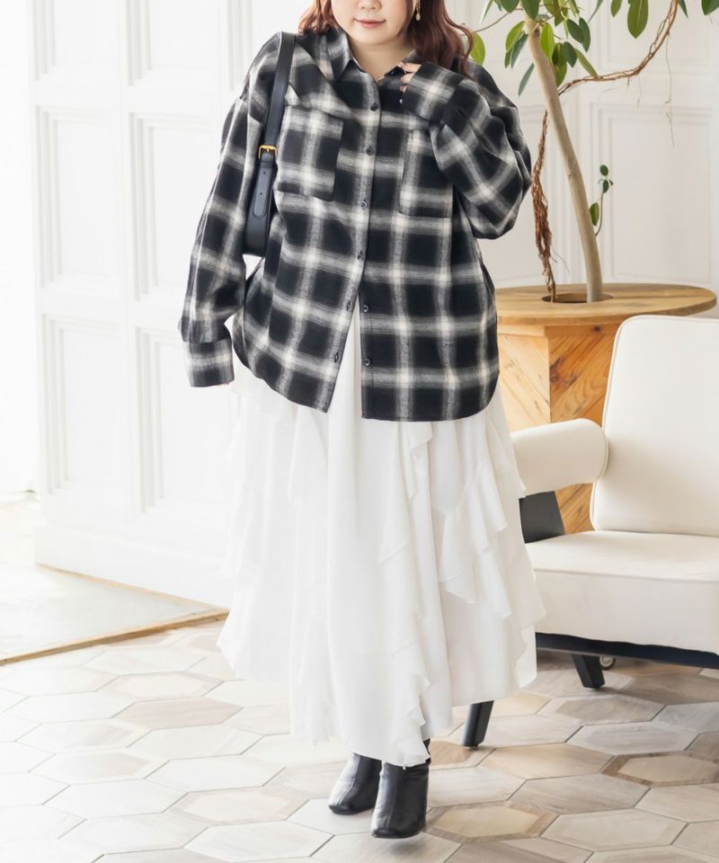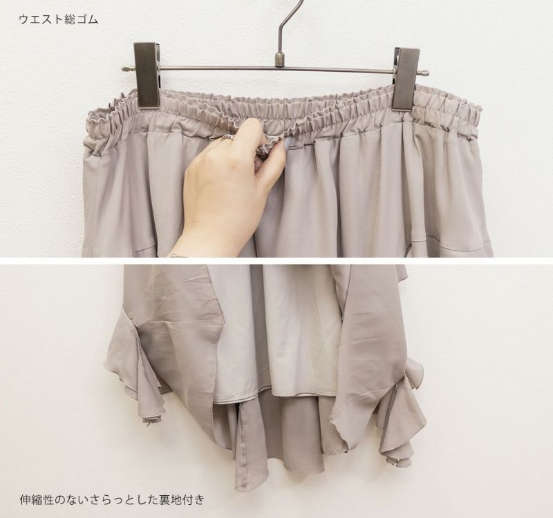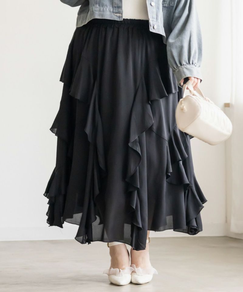 3Lサイズを着用しました。ウエストは総ゴム仕様でラクに履けてちょうどよかったです◎ラッフルデザインが歩くたびにひらっと揺れて、女性らしさをしっかり演出してくれます。ロング丈なので気になる足元もカバーしつつ、縦のラインを強調してくれるのでスタイルアップ効果も♪シンプルなトップスを合わせるだけで華やかになるので、普段使いはもちろん、ちょっとしたお出かけにもぴったりでした。