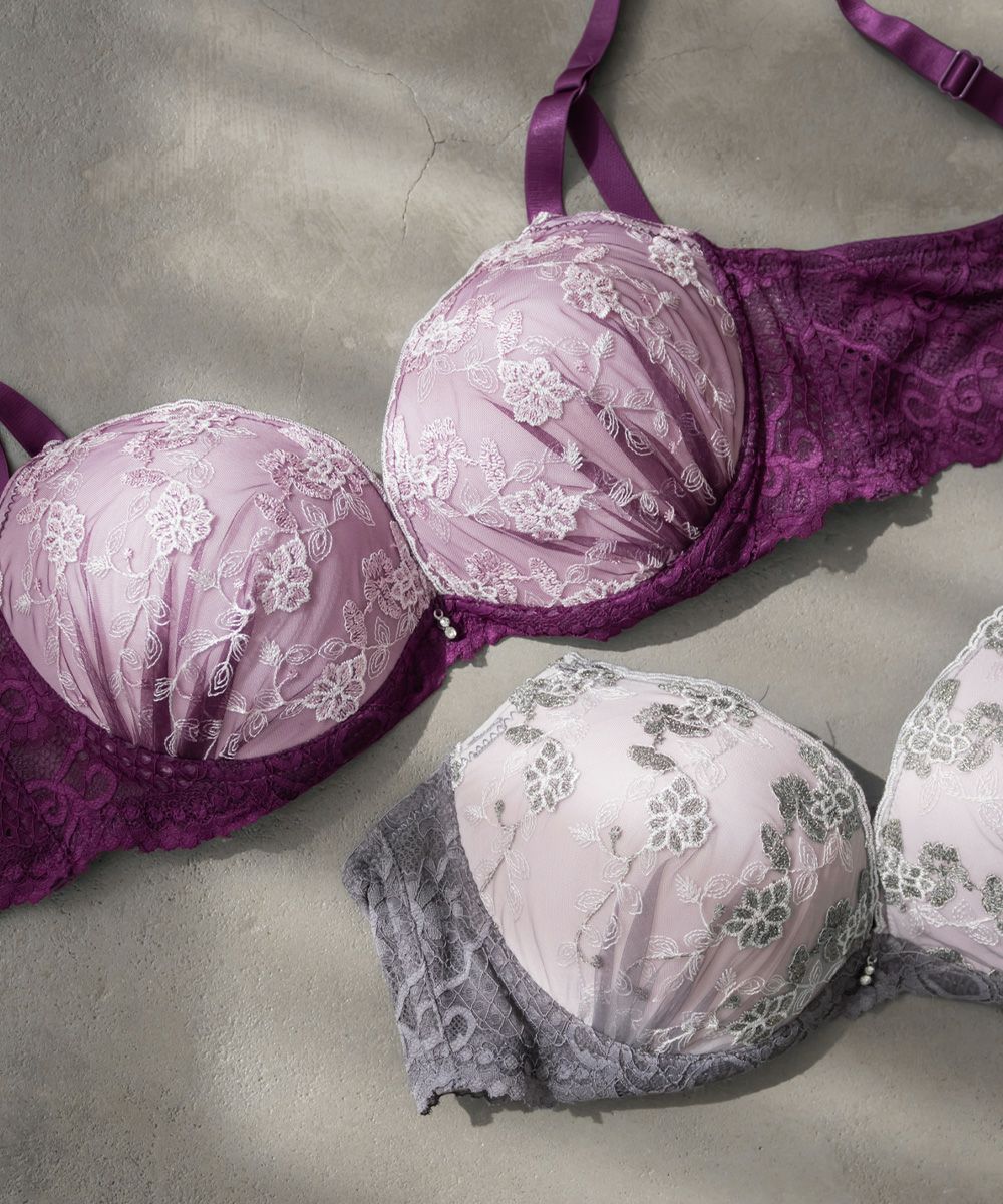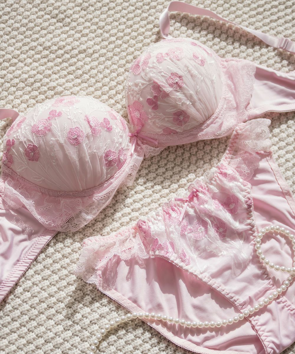 フラワー刺繍ソフトワイヤーブラジャー&ショーツセット
