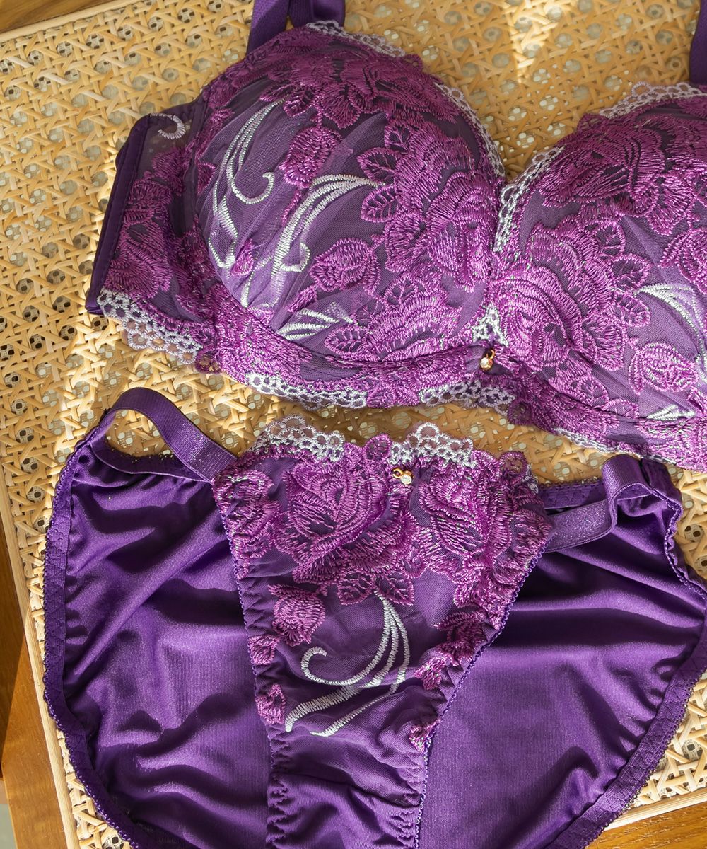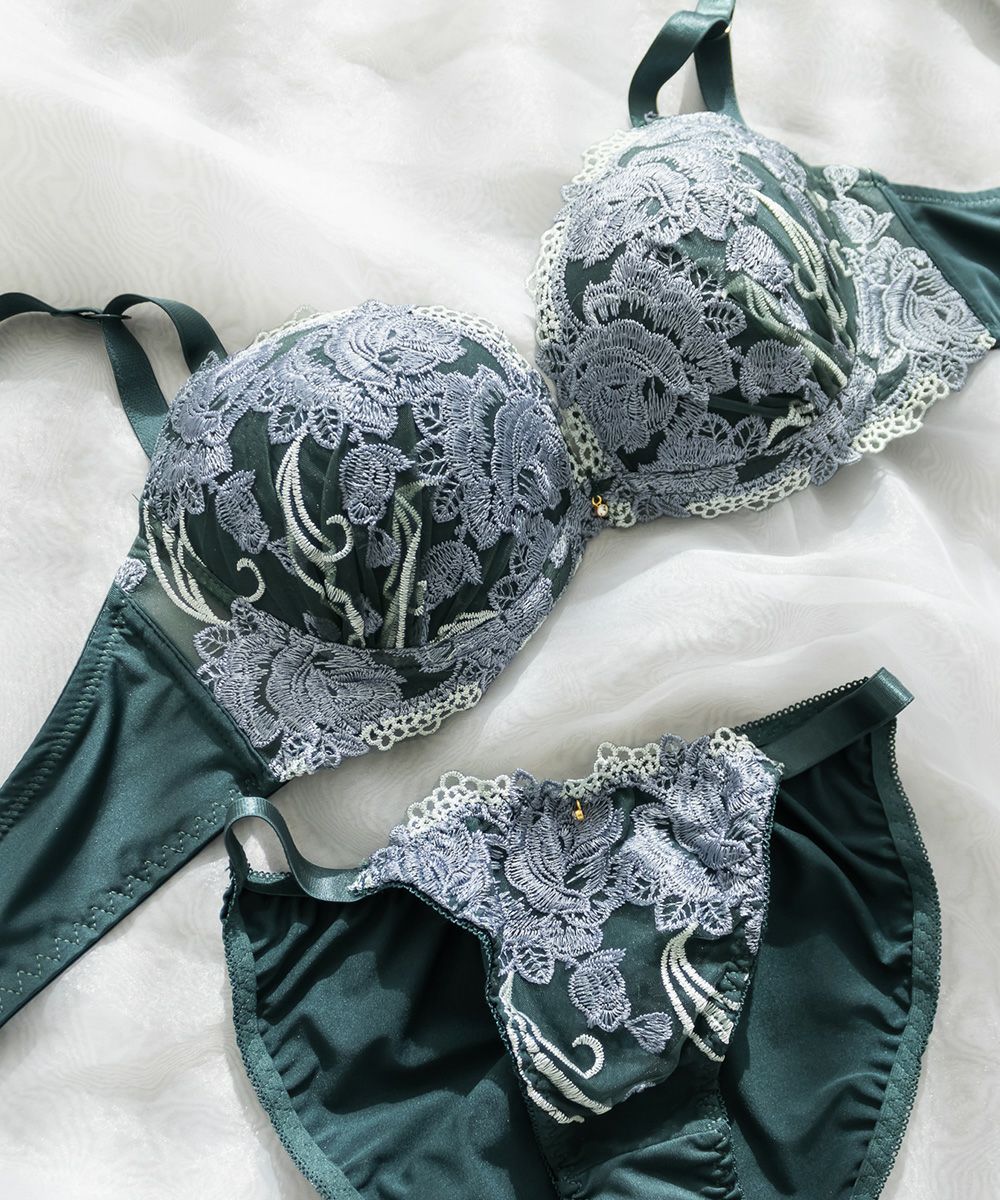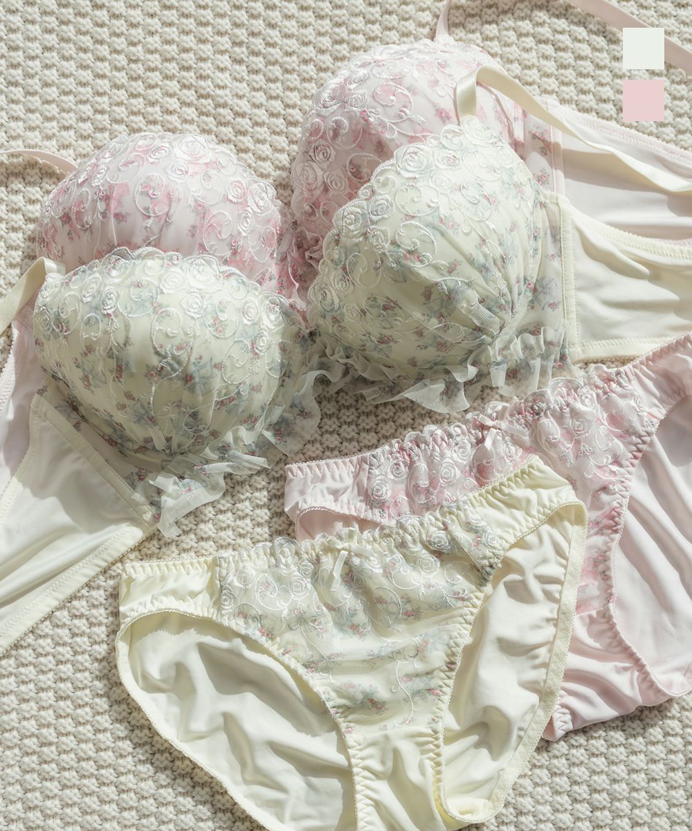 脇高ブルーム刺繍ソフトワイヤーブラジャー&ショーツセット