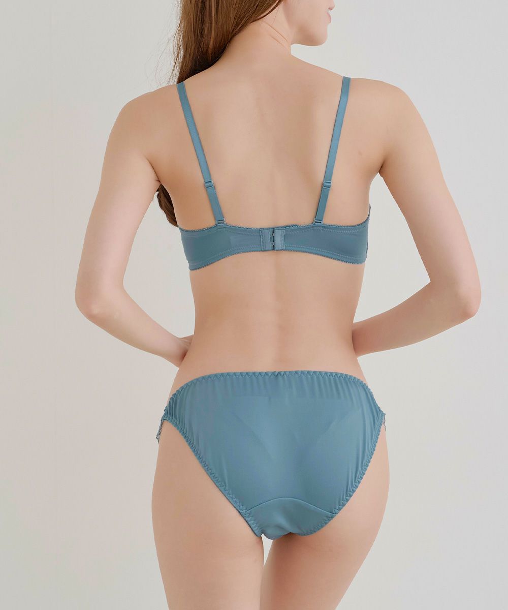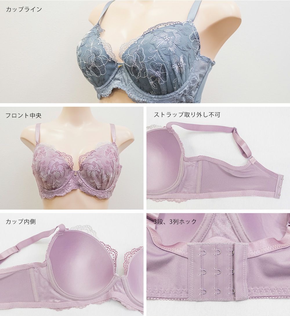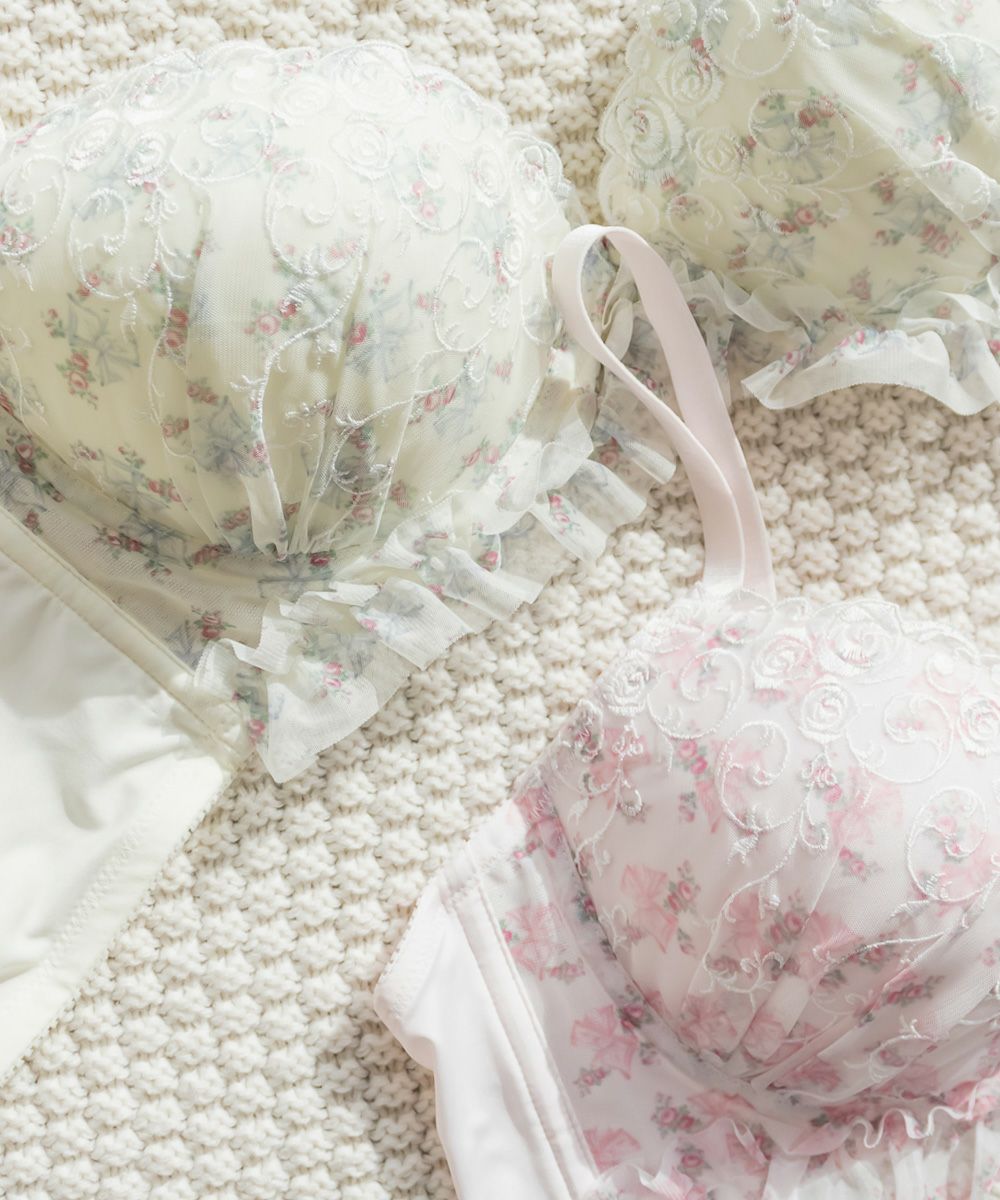 脇高ブルーム刺繍ソフトワイヤーブラジャー&ショーツセット