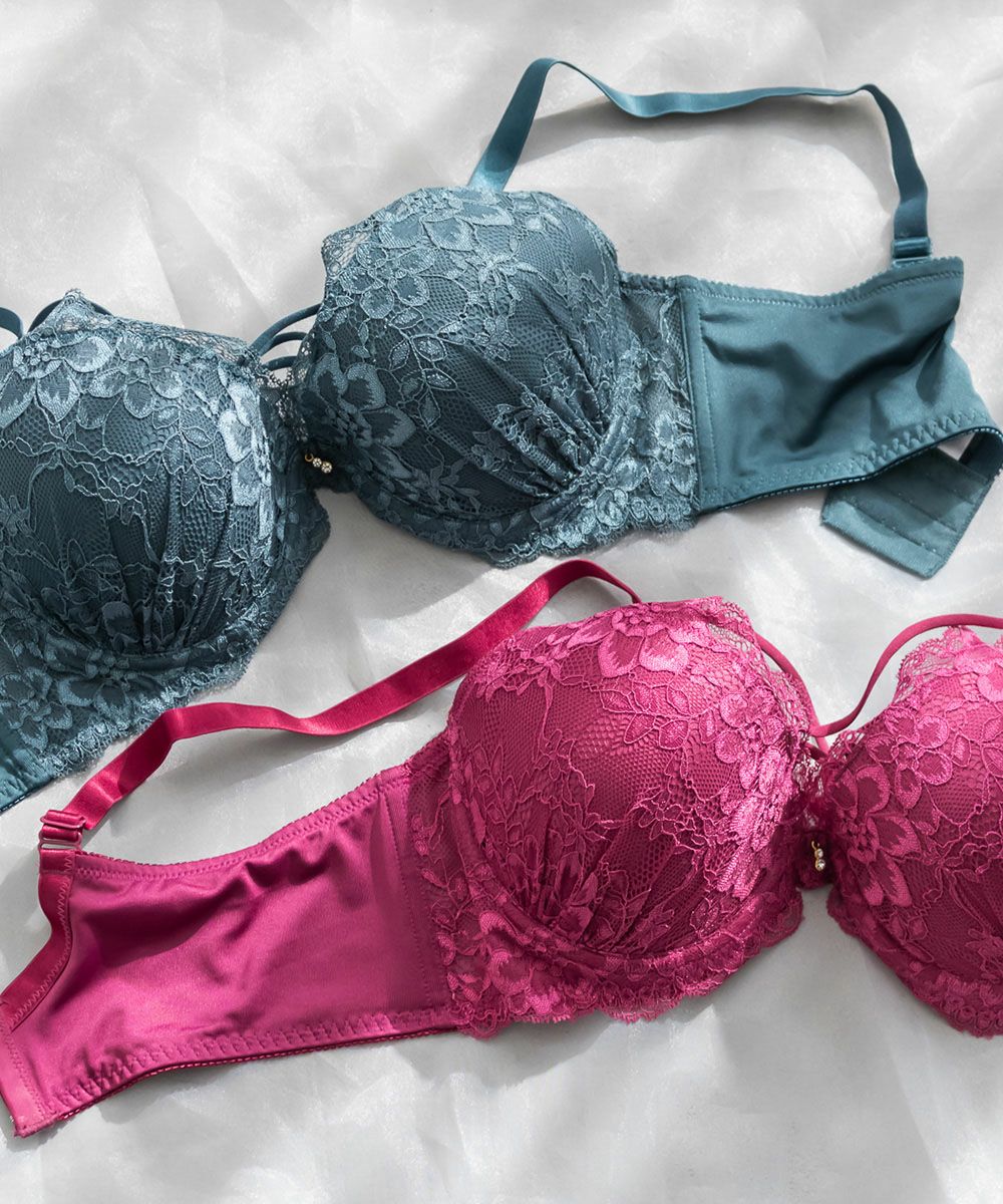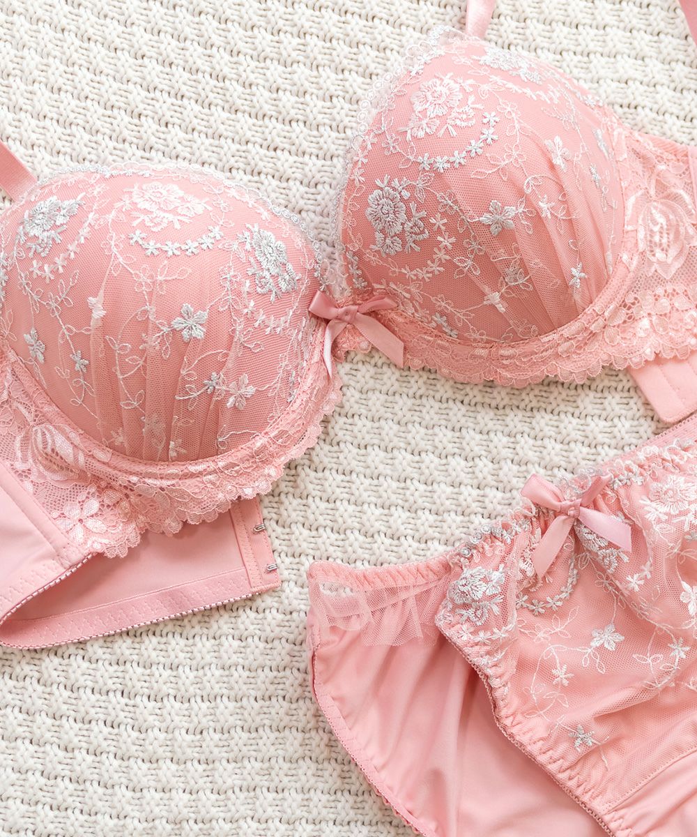 フェミニンレース刺繍ブラジャー&ショーツセット