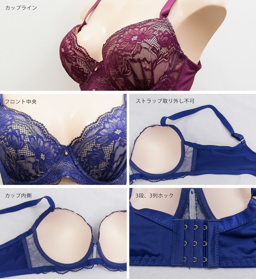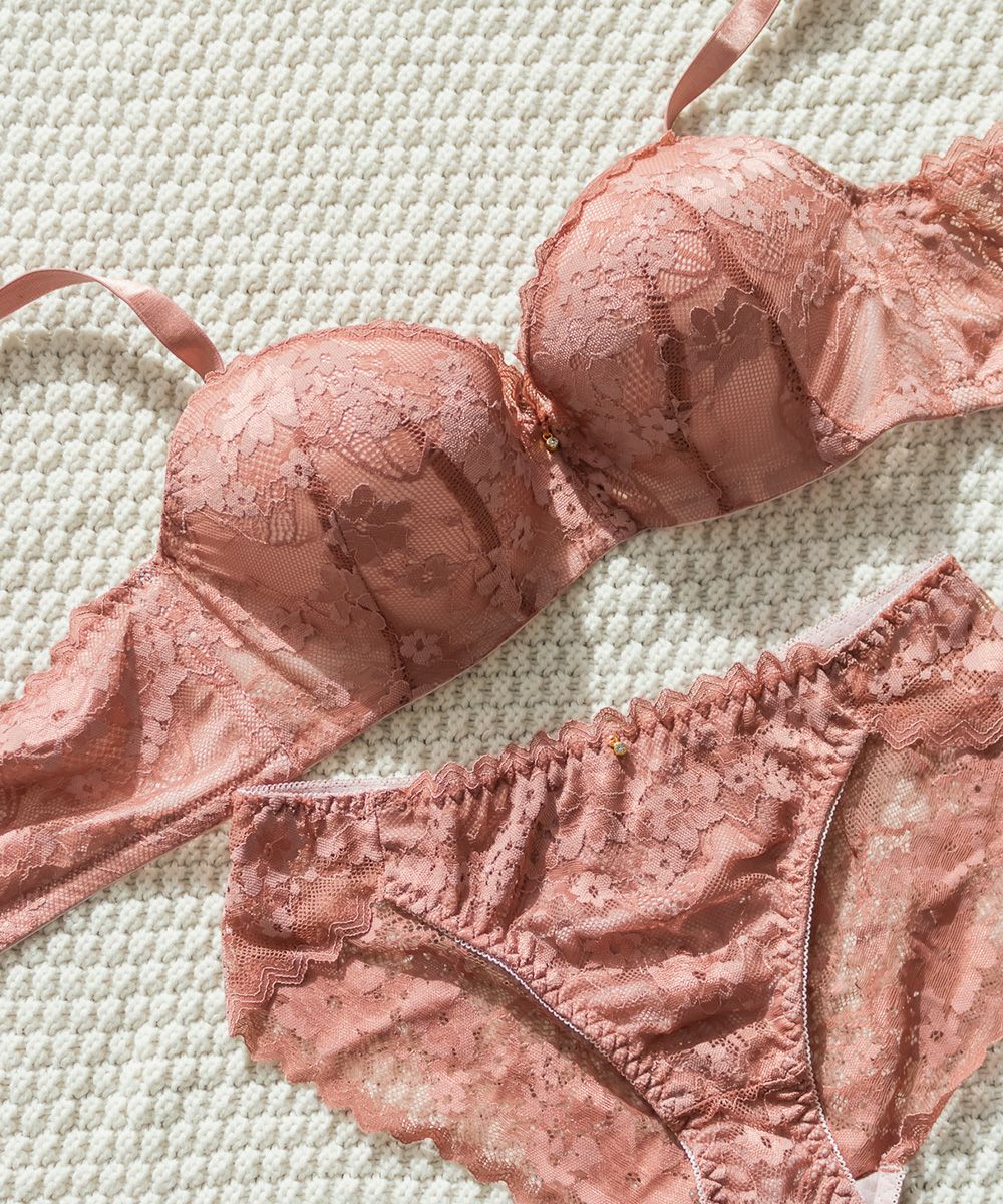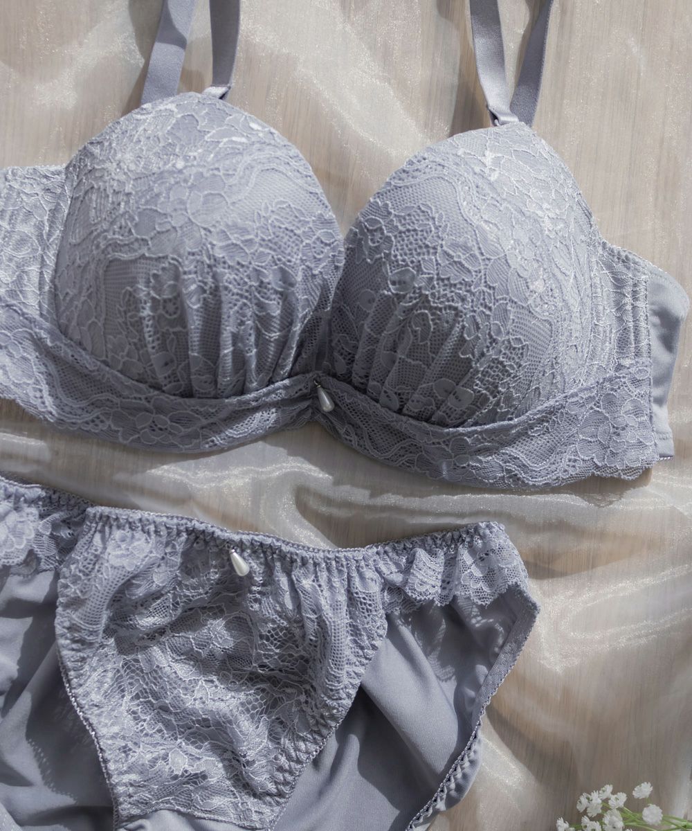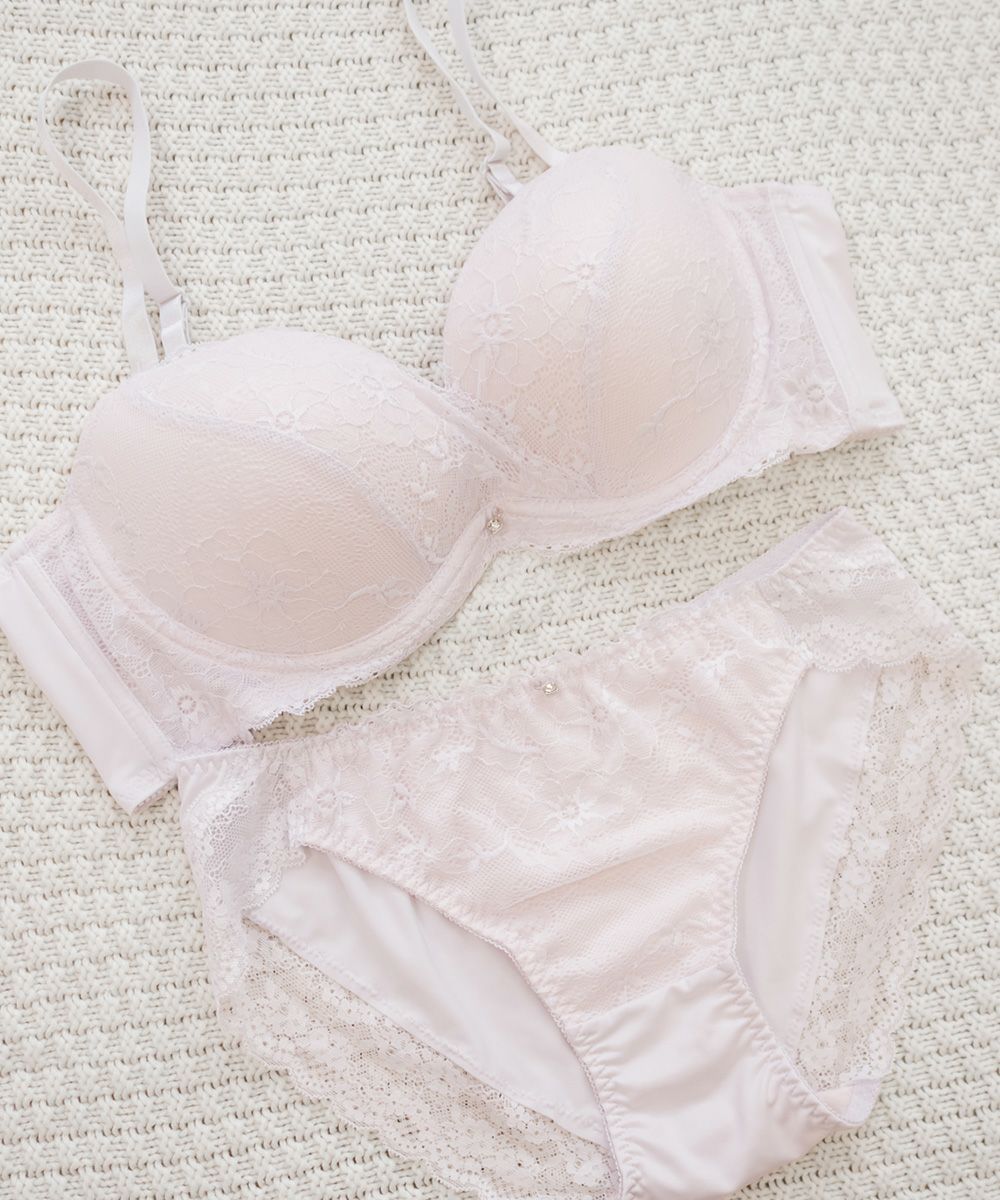 脇高エレガントレースソフトワイヤーブラジャー&ショーツセット