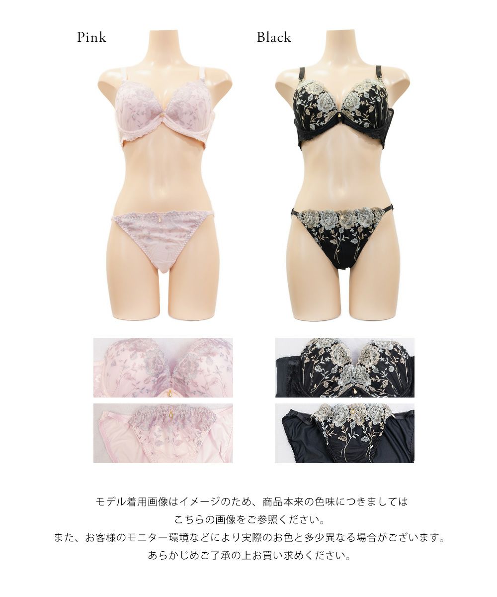 ラグジュアリーローズ刺繍ブラジャー&ショーツセット