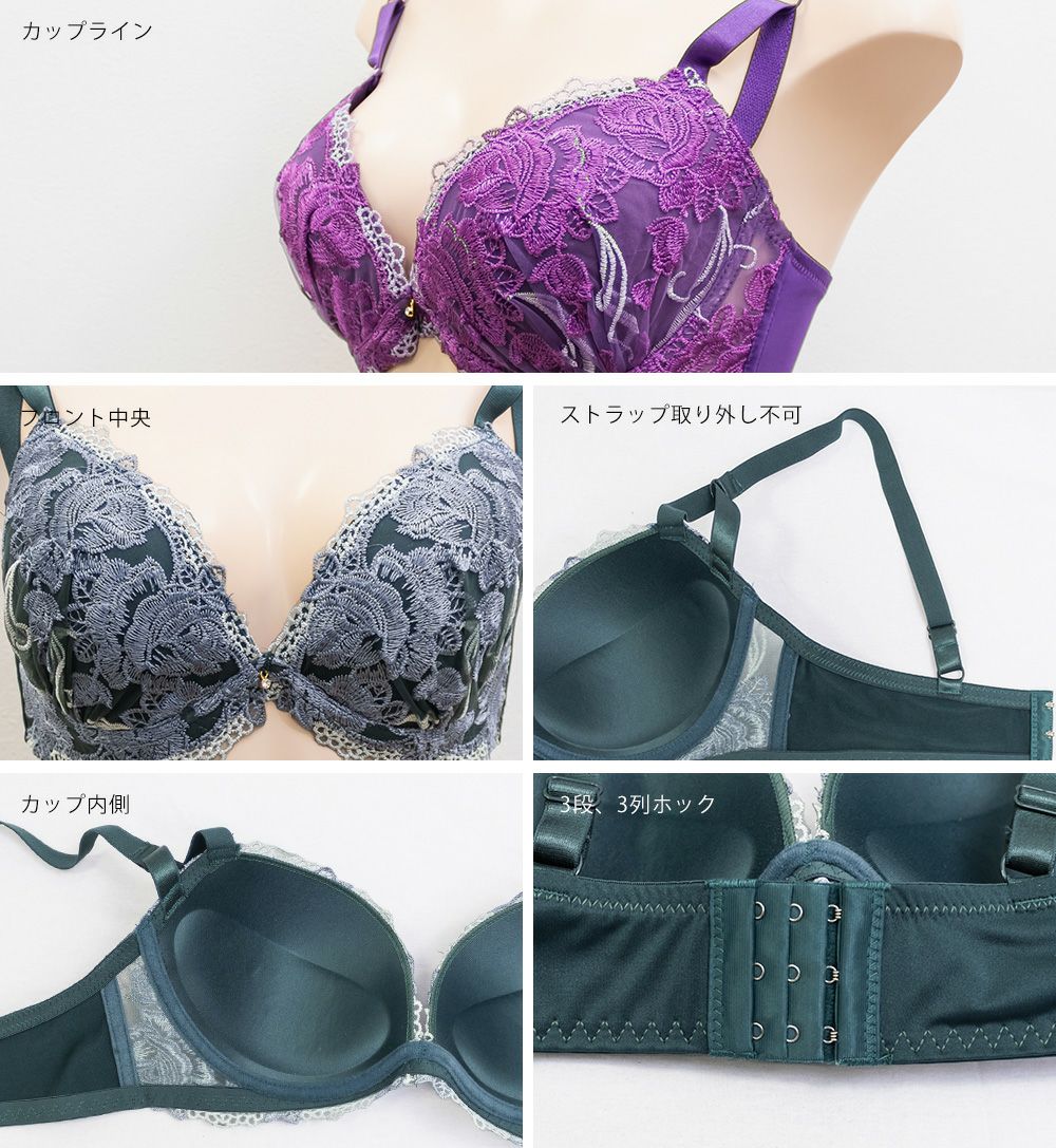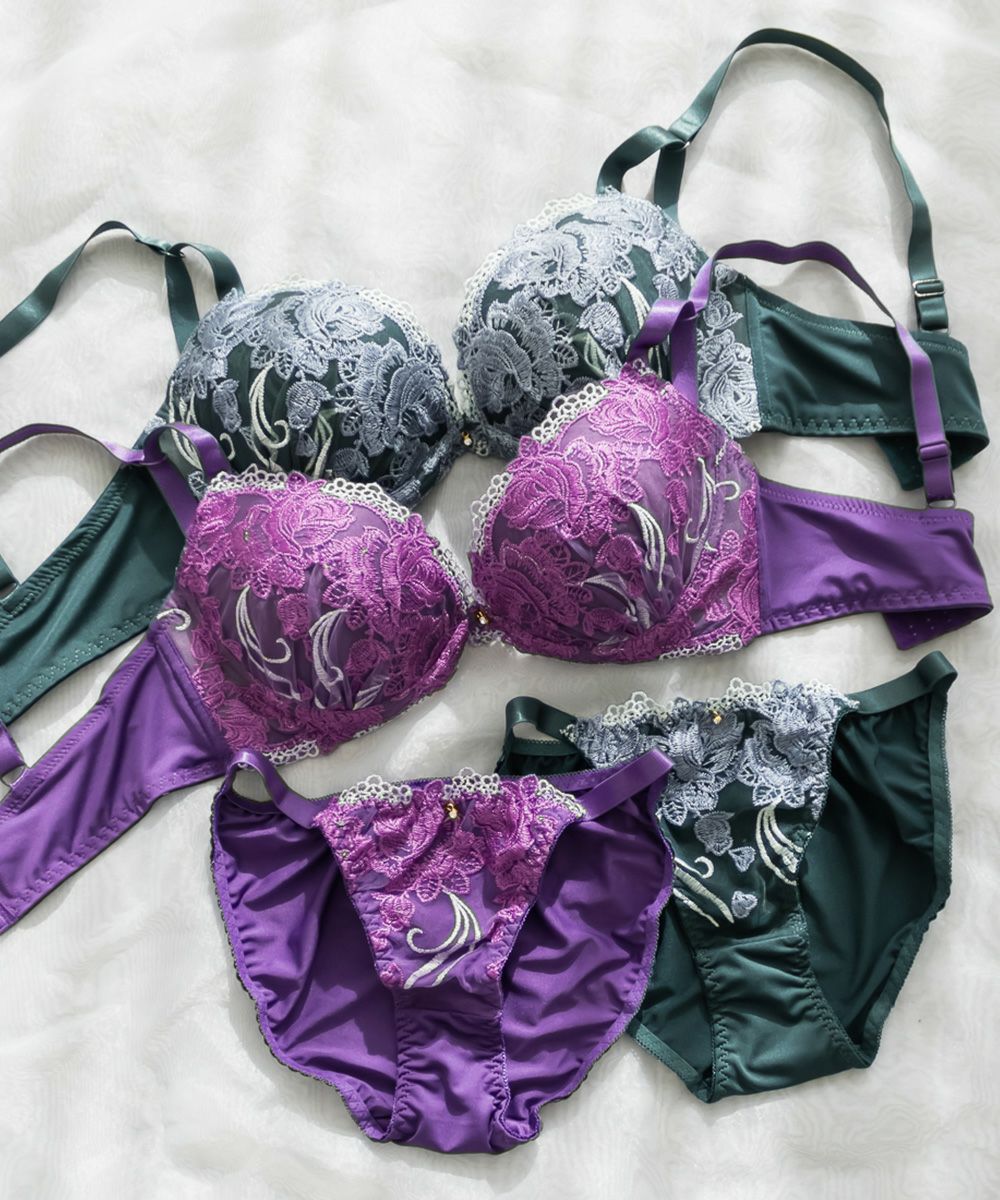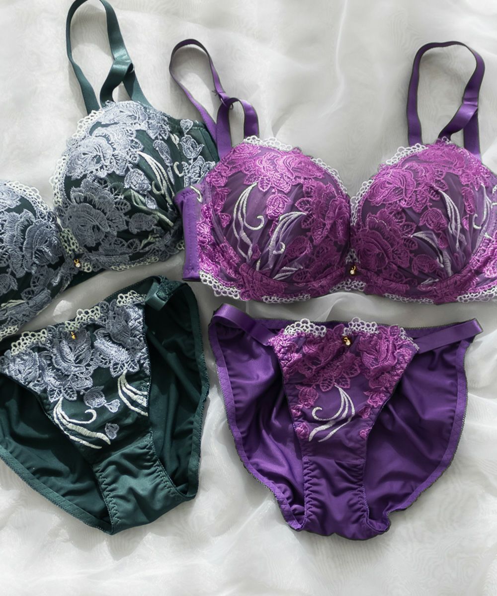 脇高エレガンスリリー刺繍ブラジャー&ショーツセット