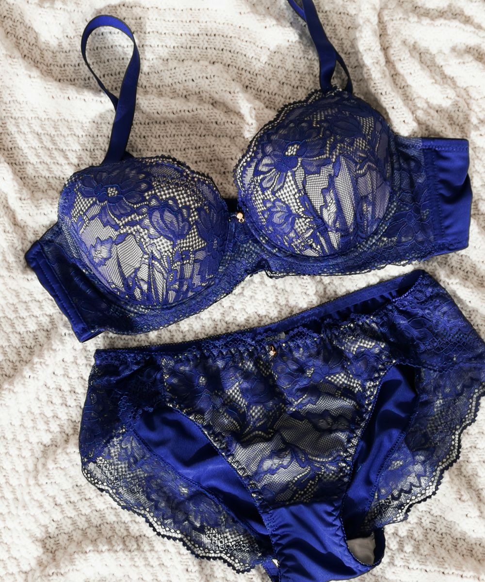 脇高フラワーレースブラジャー&ショーツセット