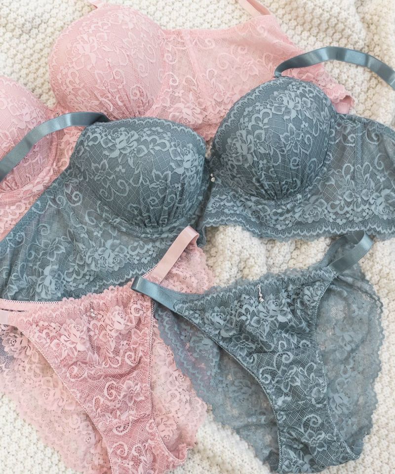 脇高ビスチェ風レーシーブラジャー&ショーツセット