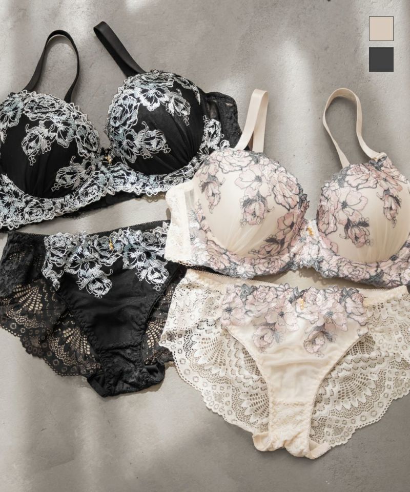 【カップタイプ】3/4カップ・モールドカップ(丸みを形成した厚みのあるカップです)、【ホックの数】3段3列、【パット付属】なし、【パットポケット】なし、【ストラップ取外し】可、【ワイヤー】あり、※タンブル乾燥禁止