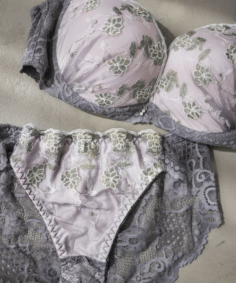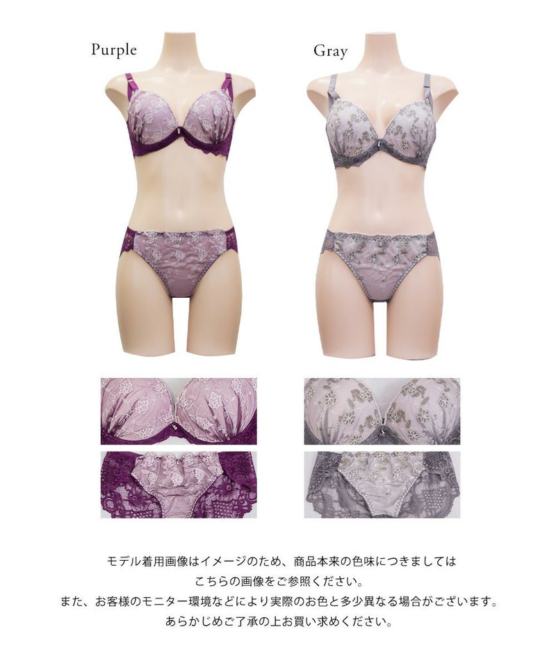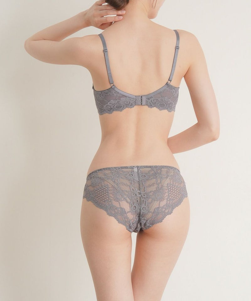 脇高シャイニーレースブラジャー&ショーツセット