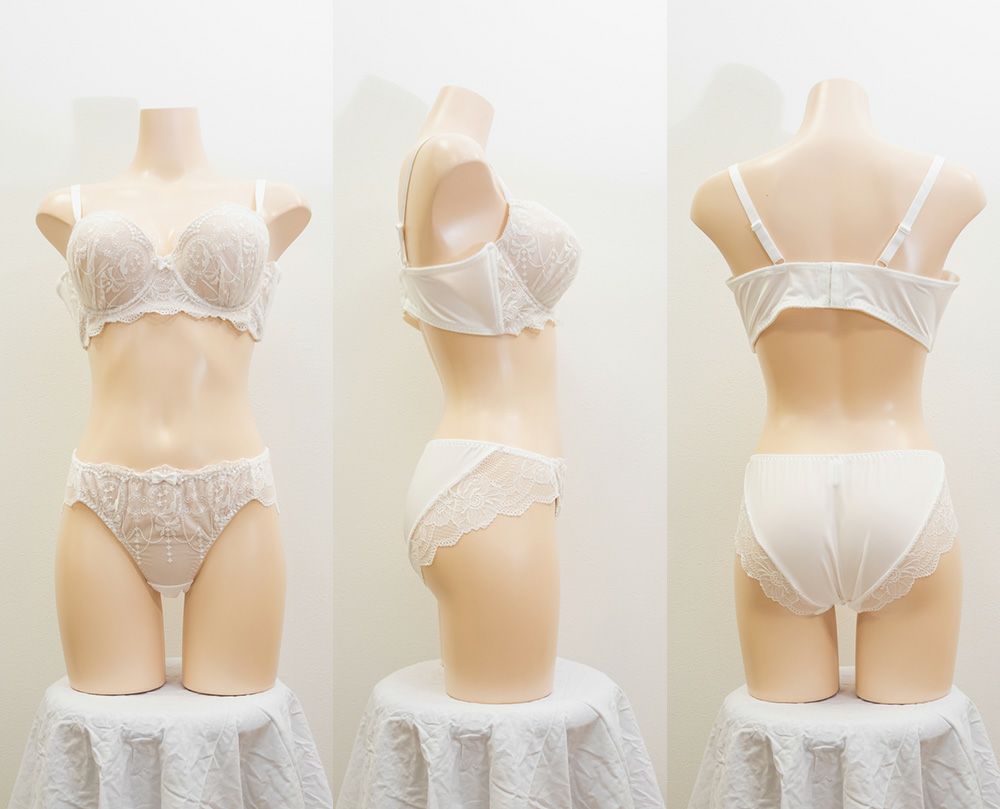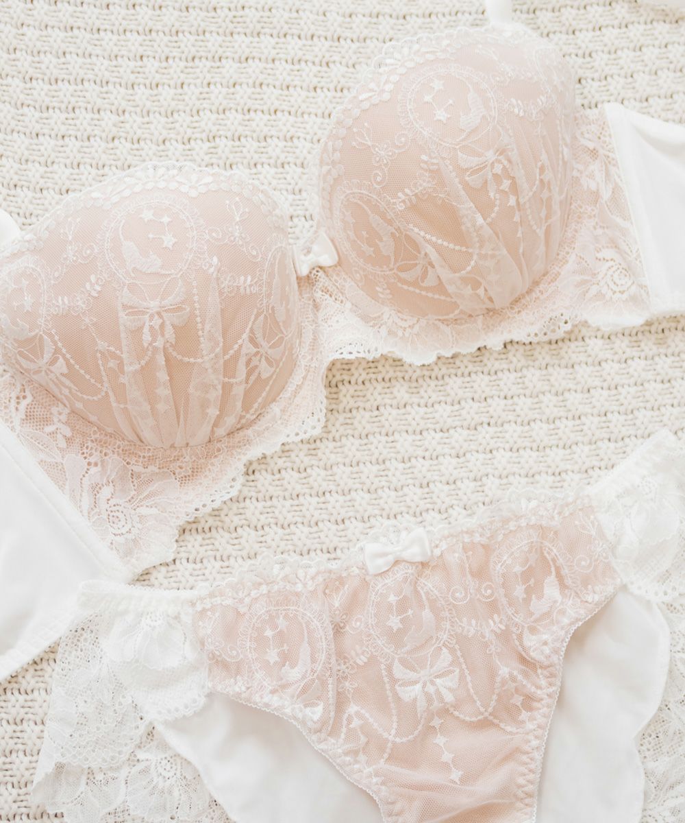 フェミニンレース刺繍ブラジャー&ショーツセット