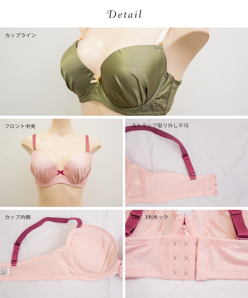 【カップタイプ】3/4カップ・モールドカップ(丸みを形成した厚みのあるカップです)、【ホックの数】3段3列、【パット付属】なし、【パットポケット】なし、【ストラップ取外し】不可、【ワイヤー】あり、※タンブル乾燥禁止
