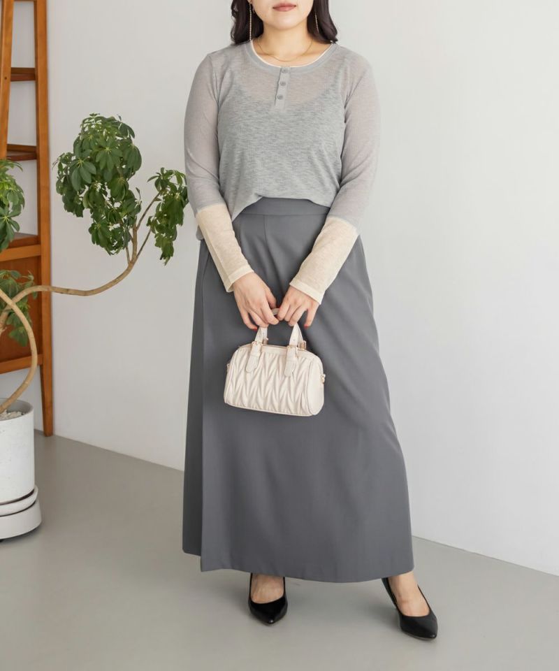 3Lサイズを着てちょうどよい着心地でした。やわらかく軽いさらっとした生地で、窮屈感も全くなく着られます◎透け感があって長袖でも涼しく着られるので、秋らしい着こなしにピッタリです!1枚でさりげないアクセントになる重ね着したようなデザインで、今っぽいヘンリーネックが大人っぽくお洒落な雰囲気です。一枚でも様になり、ワンピなどを重ね着しても可愛いと思います♪ボタンを少し開けて、抜け感のある着こなしもおすすめです。