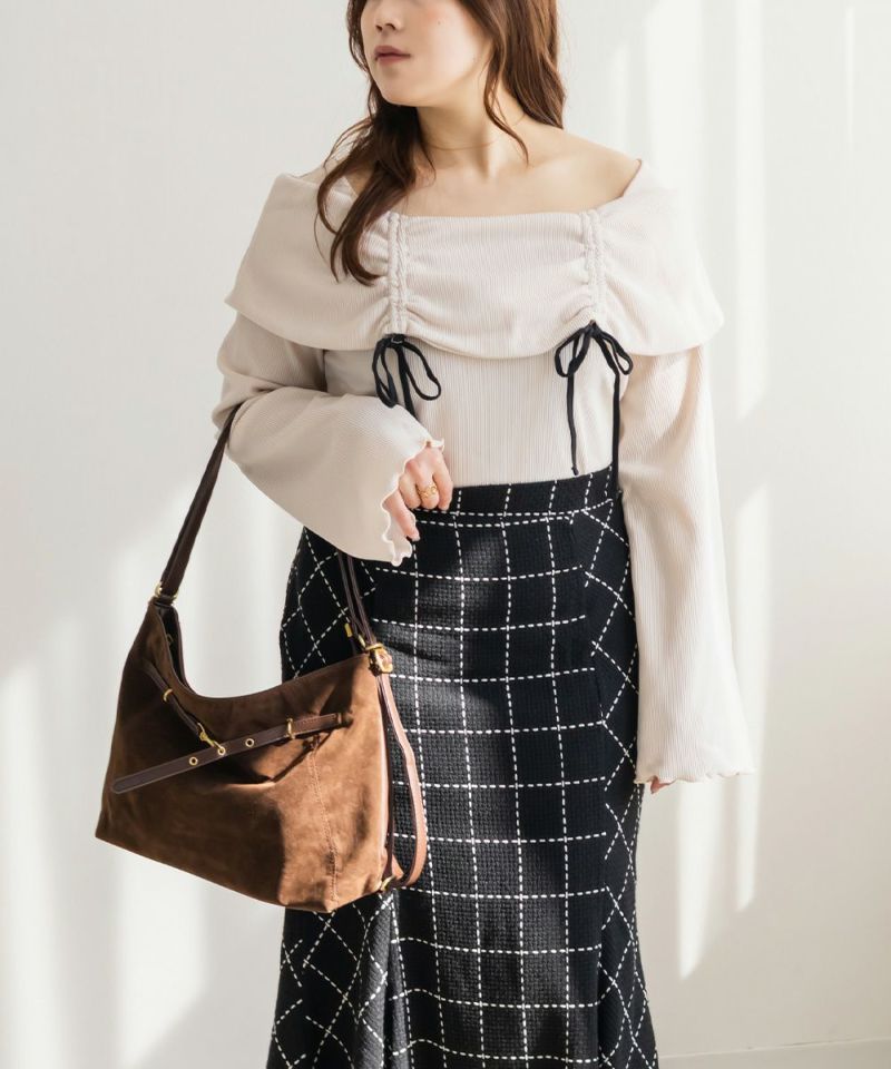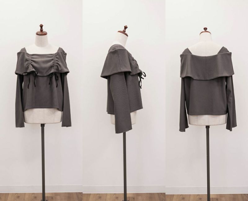 CLETTE オリジナル オフショル風 ドロスト リボン プルオーバー 長袖 秋冬 トレンド カジュアル トレンド CLETTEオリジナル★オフショル風ドロストリボンプルオーバー