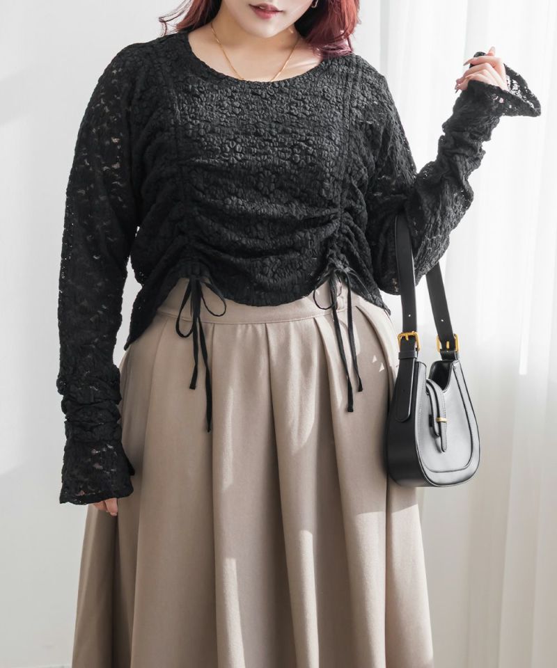 3Lを着てちょうどいいサイズでした。レースだけど程よく伸縮性のある生地でとっても着心地が良かったです!さらりとした肌触りだから、季節の変わり目とかも快適に過ごせそうです!くしゅっとシャーリングデザインで、前着丈を短くできます。人によって好みの長さがあると思うので、自分用に調節できるのはかなり嬉しいです!丈が短いと足が長く見えて、裾をインしなくていいので、お腹のポッコリもカバーしてくれます♪機能性もデザインもとっても優秀なので、着心地もおしゃれも楽しめる服を探してる方におすすめです!キャミワンピなどのインナーにもつかえて色々着回しできます◎