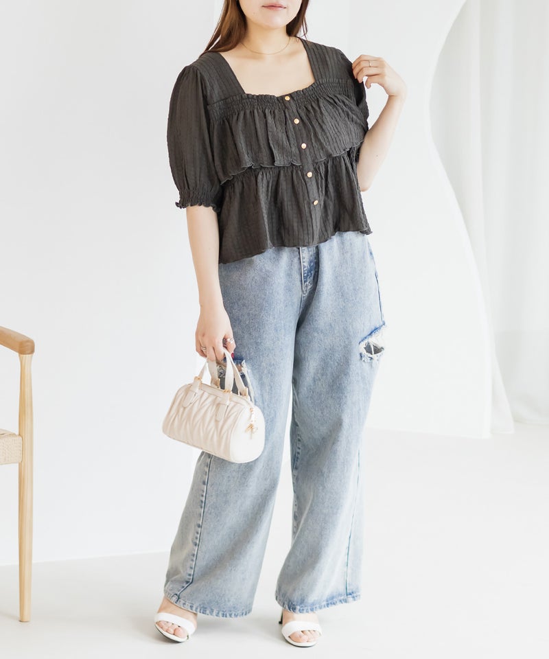 クレット 大きいサイズ プラスサイズ ジーンズ 後ゴム ケミカル ビンテージ 古着 ロングパンツ ルーズ CLETTEオリジナル★サイドタックデニムワイドパンツ ¥ 6,930 税込 お気に入りに登録する