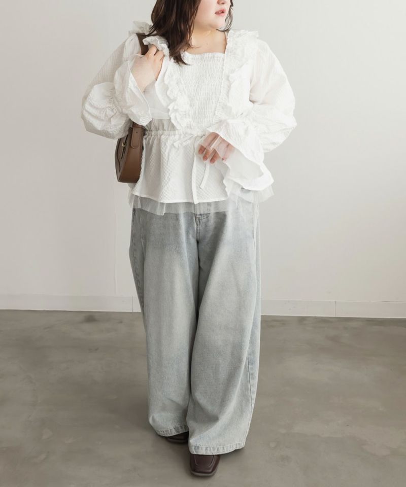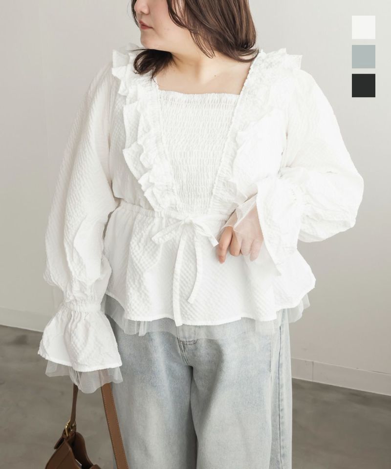 LLを着てちょうどいいサイズでした。ウエストは少し紐で調節で着たのでお好みのサイズ感で着用出来ます。凹凸のある生地とフリルがボディラインをカバーしてくれます!洗練されたデザインになっていて細かいところまで可愛いです◎胸元が見えないけれどすっきりとしたネックデザインとシャーリングゴムで着心地が楽なのも嬉しいです!ペプラムシルエットになっていて気になるお腹周りをカバーしてくれます♪ガーリーフェミニンになりすぎず、大人っぽく着こなせるので、色々なシーンで着回しできそうです。